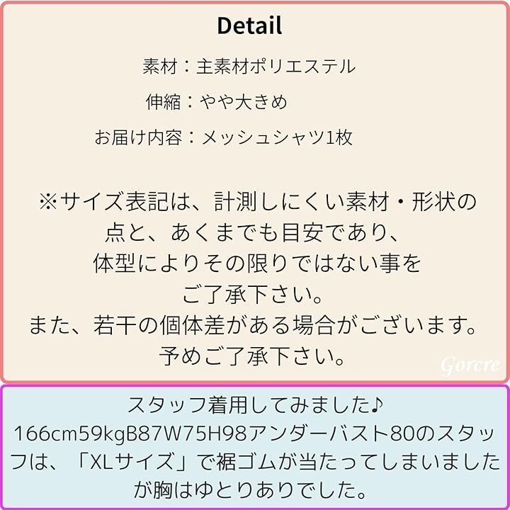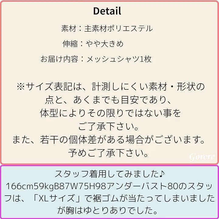 是非選択される場合は、(伸縮性はありますが)、表示サイズ前後、もしくはそれ以下のサイズ選択がおすすめです。