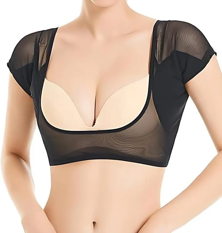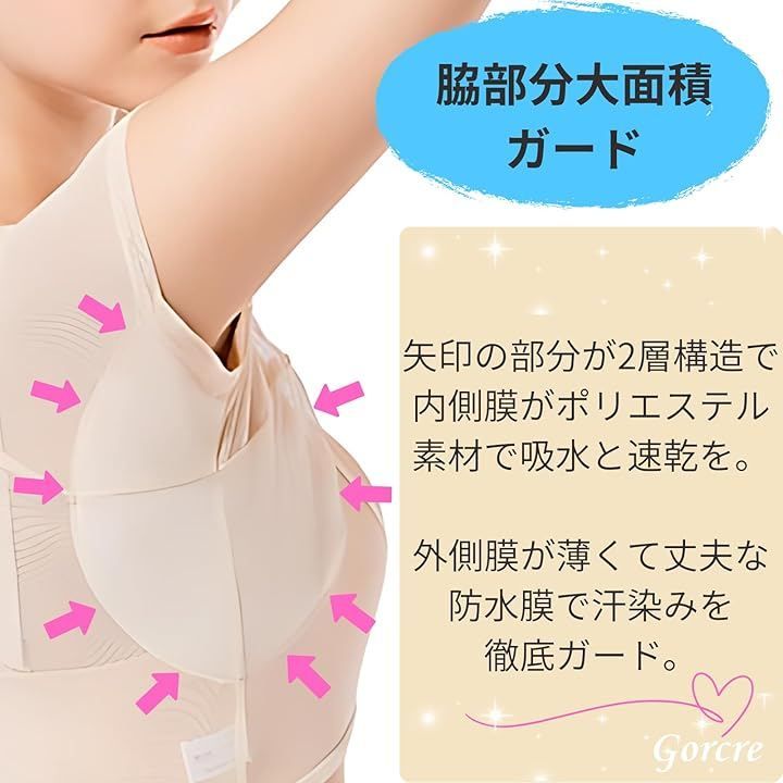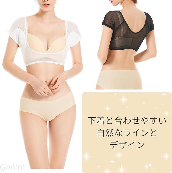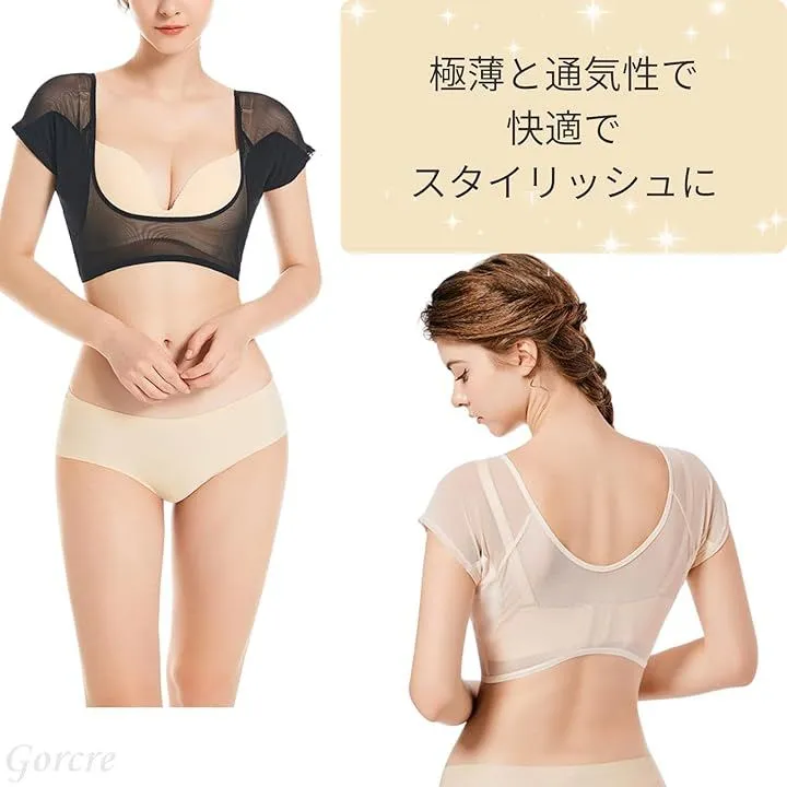 Gorcre 汗取り メッシュ インナー シャツ 脇汗 防水 パッド 付き レディース 快適 サラサラ 極薄 伸縮 吸水 抗菌 消臭 しみ 対策 (ブラック, M)