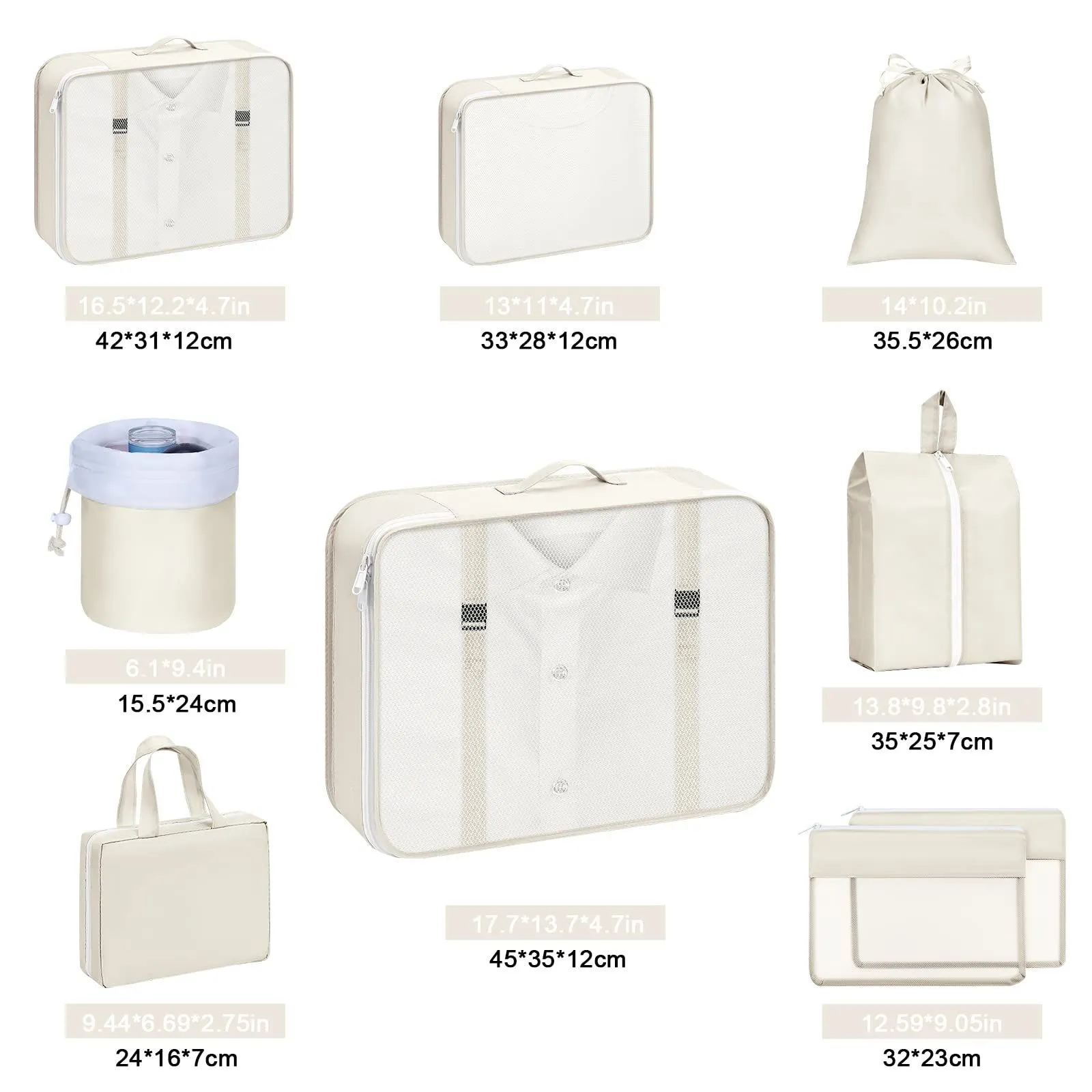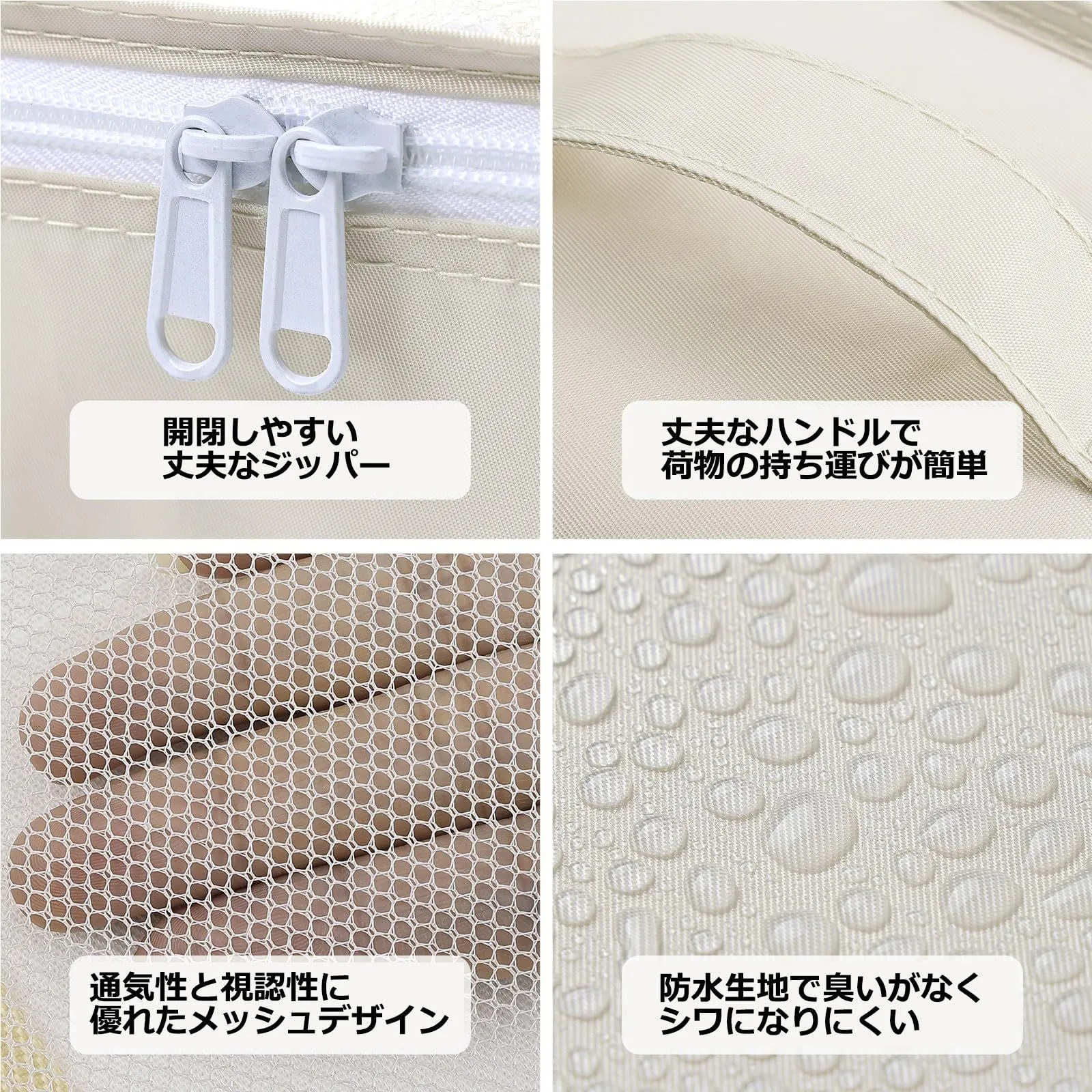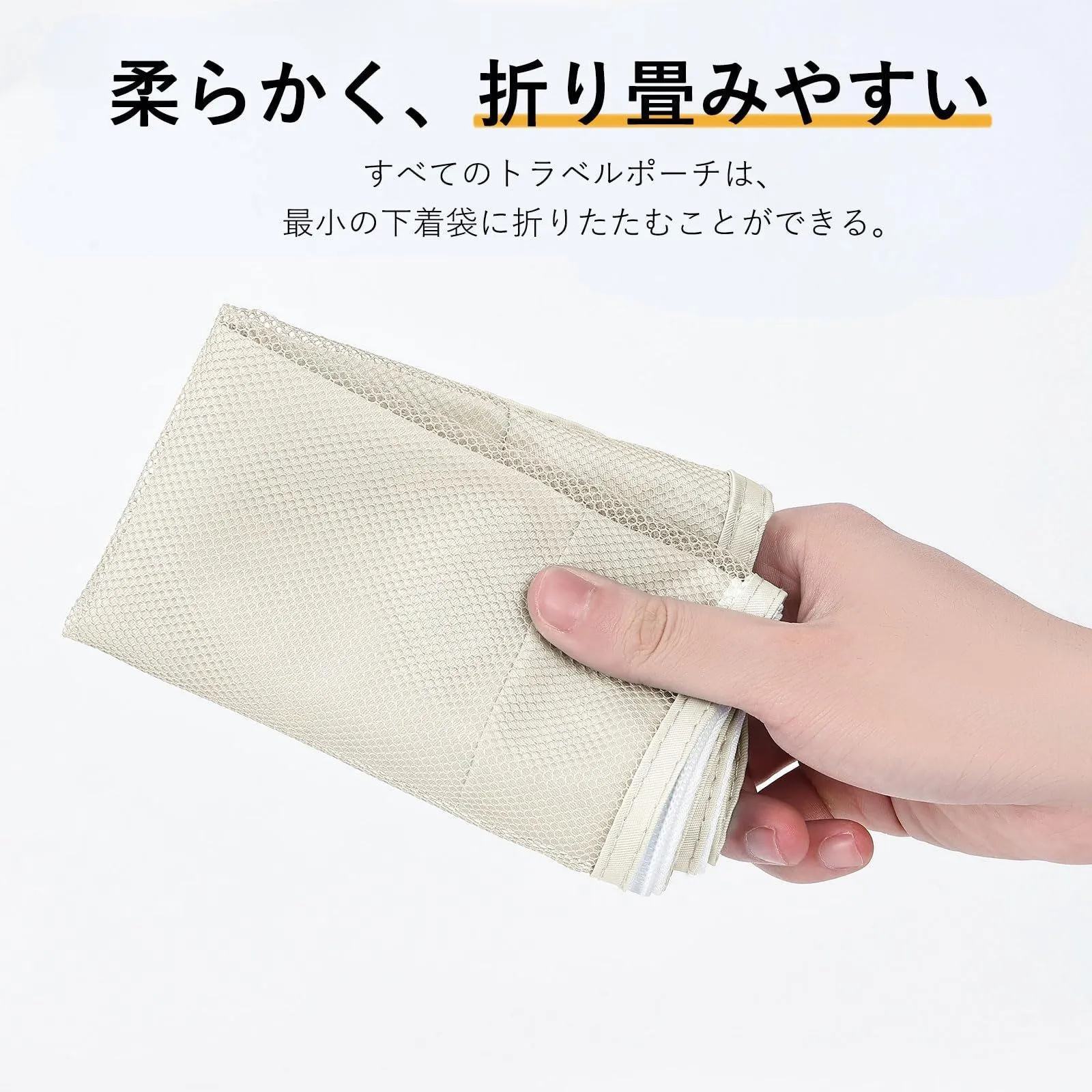 ■沖縄・離島は配送料が異なります。ご購入前にコメントをお願いいたします。 トラベルポーチ 9点セット セット内容 - 上部透明メッシュ衣類用ポーチ Lサイズ ×1 - 上部透明メッシュ衣類用ポーチ Mサイズ ×1 - 上部透明メッシュ衣類用ポーチ Sサイズ ×1 - 密閉型下着収納袋 ×1 - 旅行用シューズバッグ ×1 - 巾着袋 ×1 - 化粧品ポーチ ×1 - 小物用メッシュポーチ ×2 商品仕様 - 材質:ナイロン - カラー:ベージュ - 主な寸法:約 長さ25cm × 幅19cm × 高さ8cm - 特徴:軽量、耐傷性、撥水性、耐引裂性 商品の特徴 1. 高品質な素材と使いやすさ 高品質ナイロン生地を使用しており、非常に軽量で、撥水性・耐引裂性に優れています。 ダブルプレミアムメタルジッパーは耐久性が高く、スムーズな開閉が可能です。水洗いでき、お手入れも簡単です。 2. 整理整頓に最適なデザイン 透明で通気性の良いメッシュデザインで、中身の視認性が高く、衣類を探す時間を短縮します。 頑丈なハンドル付きで、旅行バッグ内での持ち運びも容易です。軽量ながら耐荷重に優れ、重い荷物の収納も安心です。 3. 多様な収納シーンに対応 衣類の仕分けや整理に最適で、旅行先でも必要なものを素早く見つけられます。 シーズンオフの衣類整理や、クローゼット・引き出しの収納整理にもご活用いただけます。 4. コンパクトで幅広い用途 超軽量で折り畳み可能、通気性が良く防臭・防水防塵性を備えています。 出張や旅行はもちろん、温泉、スポーツ、キャンプなどのアウトドアシーン、ご家庭での日常の収納整理にも便利です。