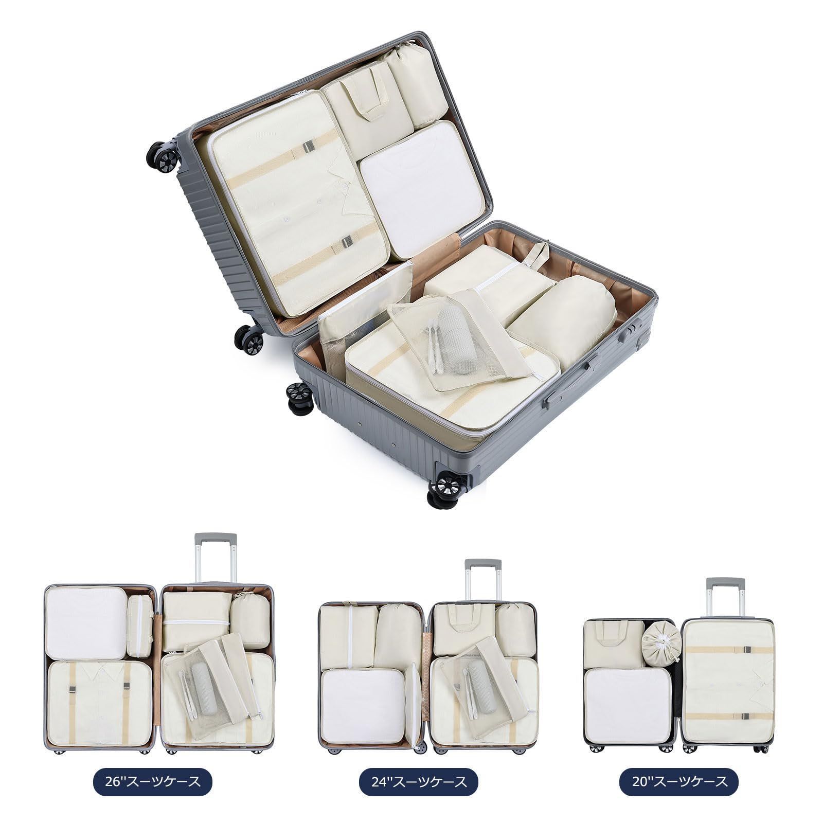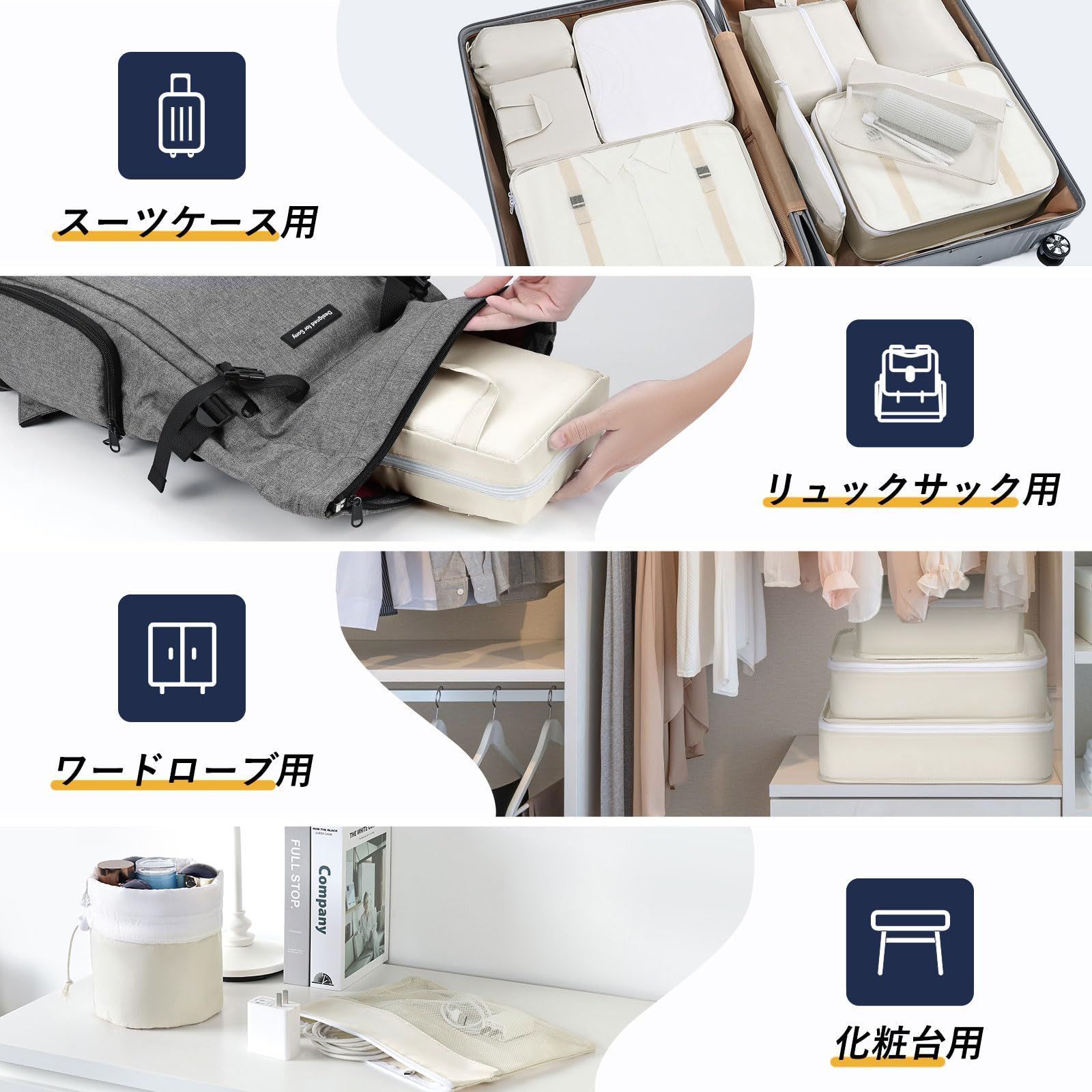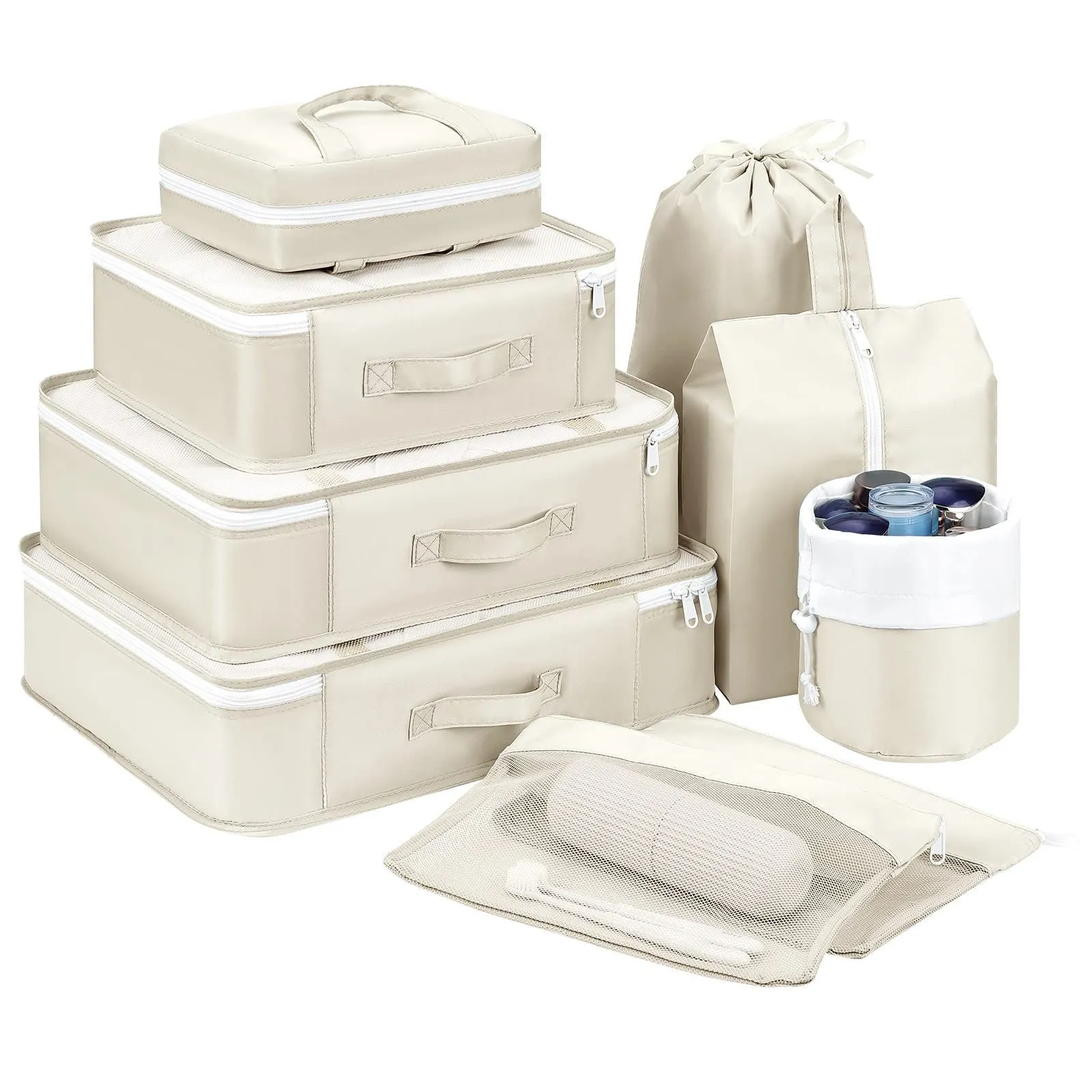 収納 オーガナイザー パッキング アレンジケース トラベルポーチ 旅行用 衣類仕分け 荷物仕分け 便利グッズ 多機能 10点セット 旅行用ポーチ 簡単 軽量 おしゃれ ベージュ 防災グッズ スーツケース 出張 旅行 【売れ筋】【大バズり】