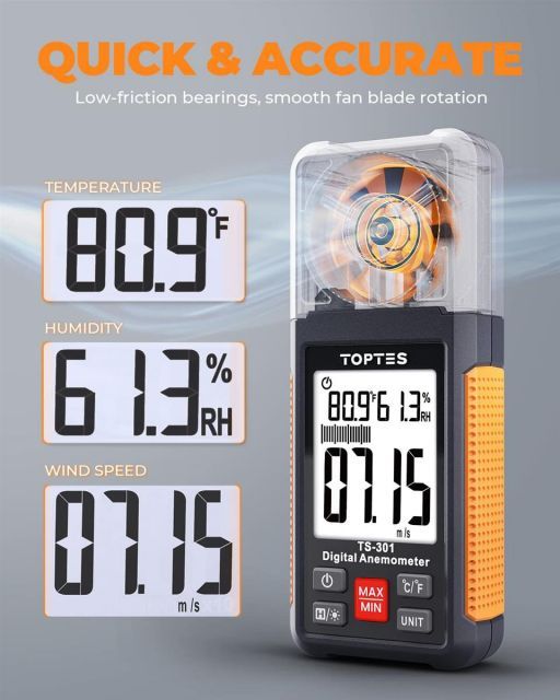 【送料無料】TopTes 風速計 TS-301 ハンディ風量計 大画面液晶 高精度 操作簡単電子風速計 6つの測定単位 ドローンの飛行に適用 セーリング、ゴル