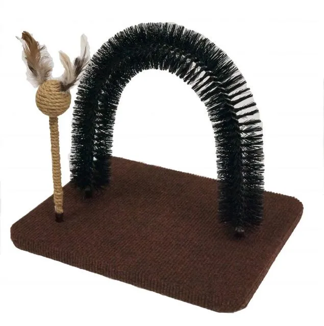 ◆商品名:キャティーマン(CattyMan)モダンルーム毛づくろいブラシ 本体サイズ(幅X奥行X高さ):35×29×27cm 本体重量:1.45kg 素材:板:パーチクルボード/生地:ポリエステル/ブラシ:ナイロン、スチール 原産国:中華人民共和国 用途:キャットタワー(猫用) 工具不要の簡単組立 商品紹介・子猫から成猫まで使えるコンパクトサイズの猫用ファニチャー。・やさしいタッチで爪にやさしいカーペット貼り床はツメミガキができる。・鳥の羽付きのジュート縄まき玩具は振るとカラカラ鳴り、猫ちゃんを魅了する。・程よい硬さのナイロン製ブラシでスリスリしながら毛づくろいができる。・ちょっとしたスペースに置くことができるコンパクトサイズ。初めて猫ちゃんを飼う方にもおすすめ。使用上の注意