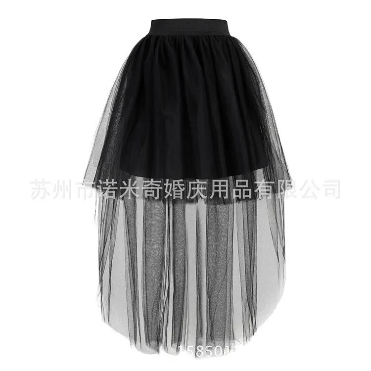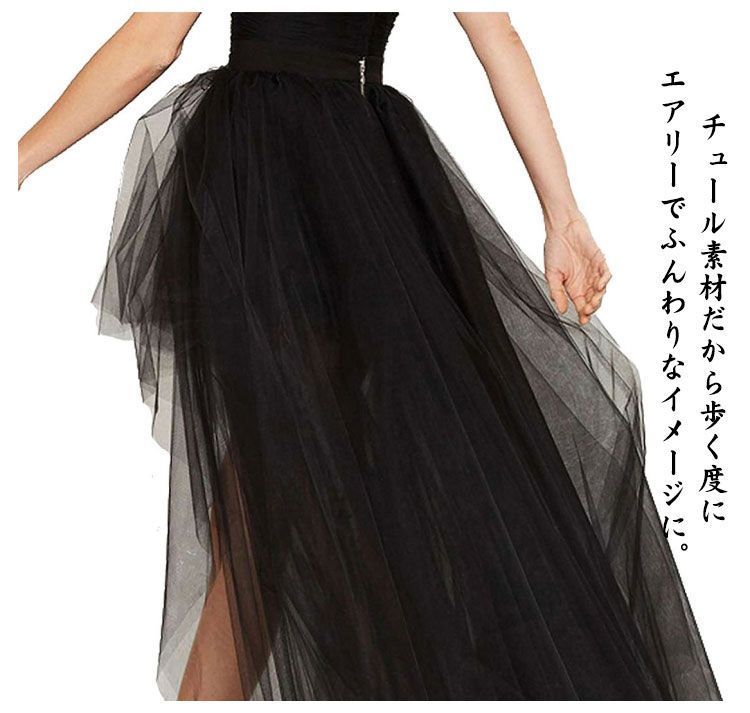 ダンス衣装 スカート チュール アシメトリー 前短後ろ長 3段 レイヤード ヒップスカート 社交ダンス ステージ衣装 ウエストゴム 白 黒 赤