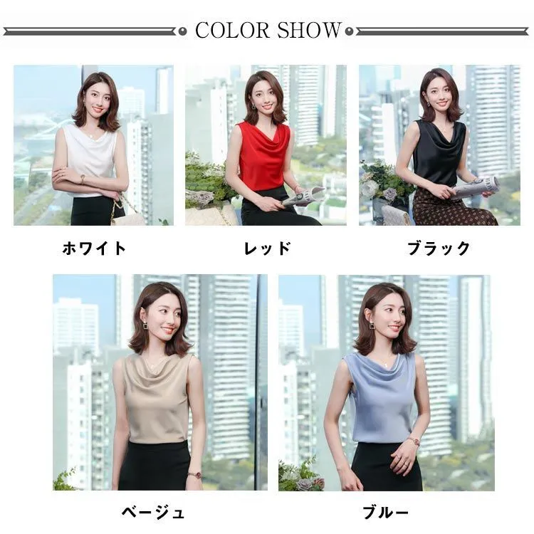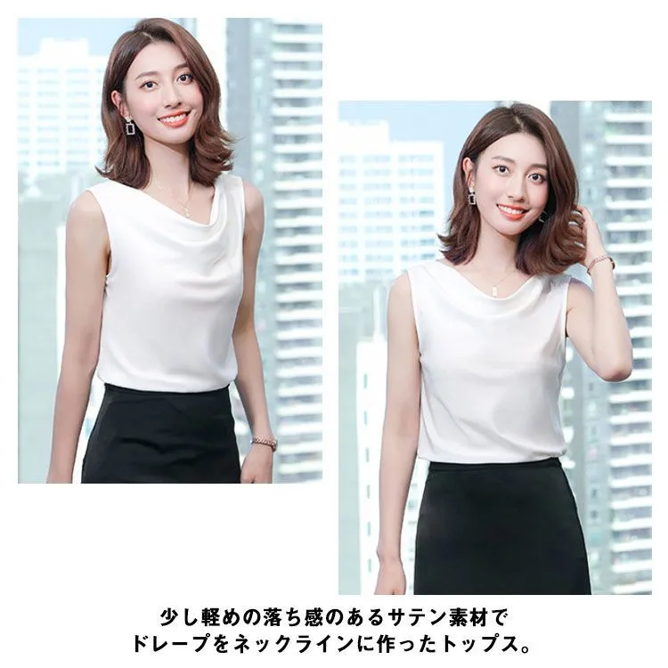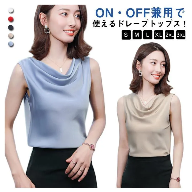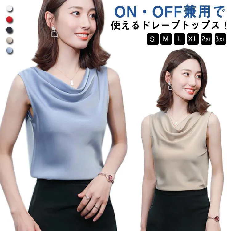 タンクトップ レディース インナー ドレープネック シルクタッチ ノースリーブ 肩見せ 肩出し プルオーバー スムース素材 シンプル きれいめ 上品 大人 フォーマル ビジネス オフィス 通勤