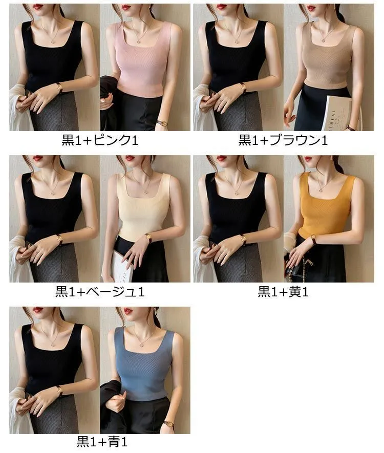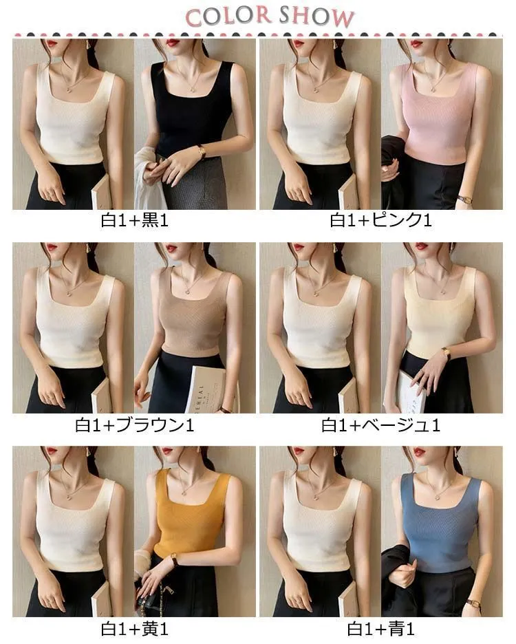 ■沖縄・離島は配送料が異なります。ご購入前にコメントをお願いいたします。 商品情報 サイズ: 2枚セット 適応体重: 37.5-65kg 素材: ビスコース --- カラー: 白1+黒1 白1+ピンク1 白1+ブラウン1 白1+ベージュ1 白1+黄1 白1+青1 黒1+ピンク1 黒1+ブラウン1 黒1+ベージュ1 黒1+黄1 黒1+青1 --- 商品の特徴: リブ編みの伸縮性のある涼感生地を使用したスクエアリブタンクトップです。 * 快適な着心地: さらりとした手触りで、ライトな生地感。 * シンプルなデザイン: 無駄のないサイジングとディテールで、毎日使いやすいマストアイテム。 * 機能性: 太めに設計された肩紐で、ブラジャーの紐をしっかりカバー。 * 高い汎用性: 薄手のTシャツやブラウス、シアーシャツなど、様々なアイテムのインナーとして活躍します。