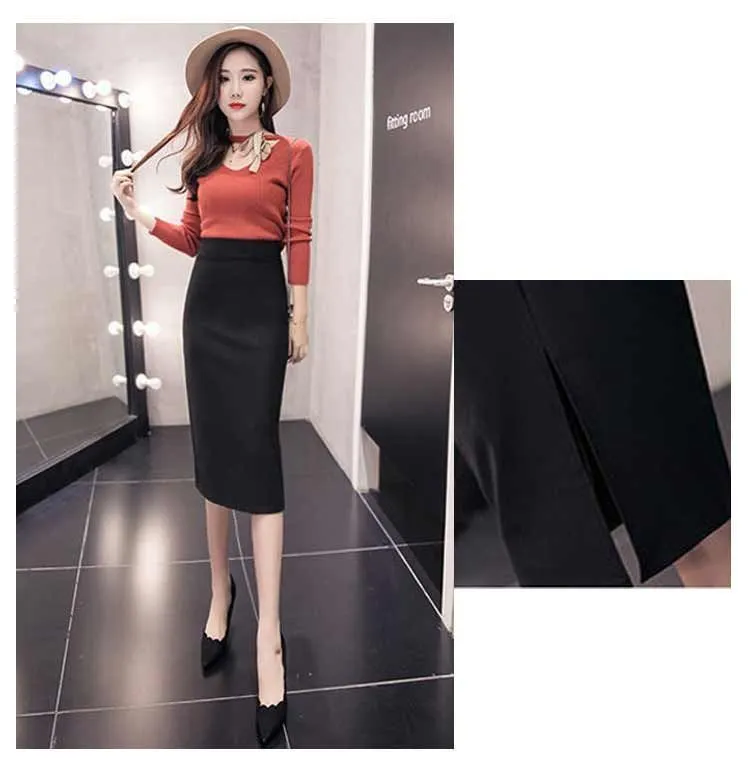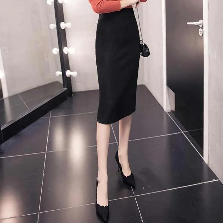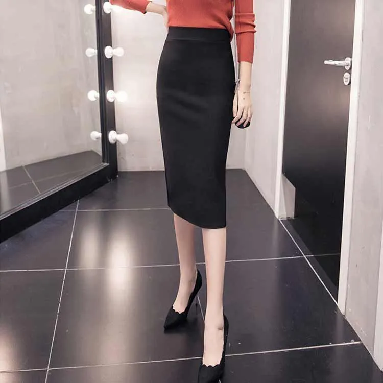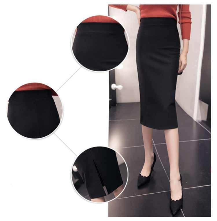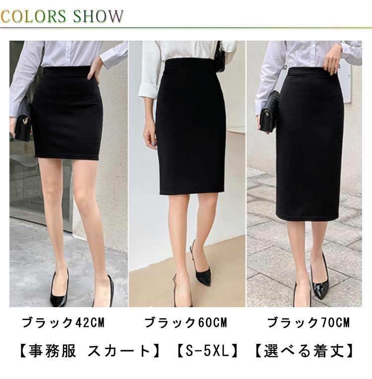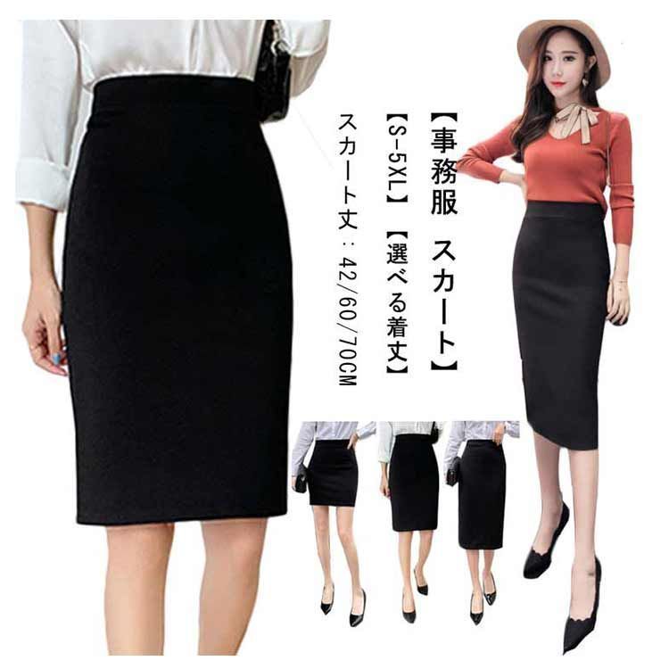 スカート 事務服 制服 オフィス 企業 ユニフォーム レディース タイトスカート リクルートスカート 膝丈 ひざ丈 ロング丈 選べる着丈 ウエストゴム ストレッチ 大きいサイズ 黒 春 夏 秋