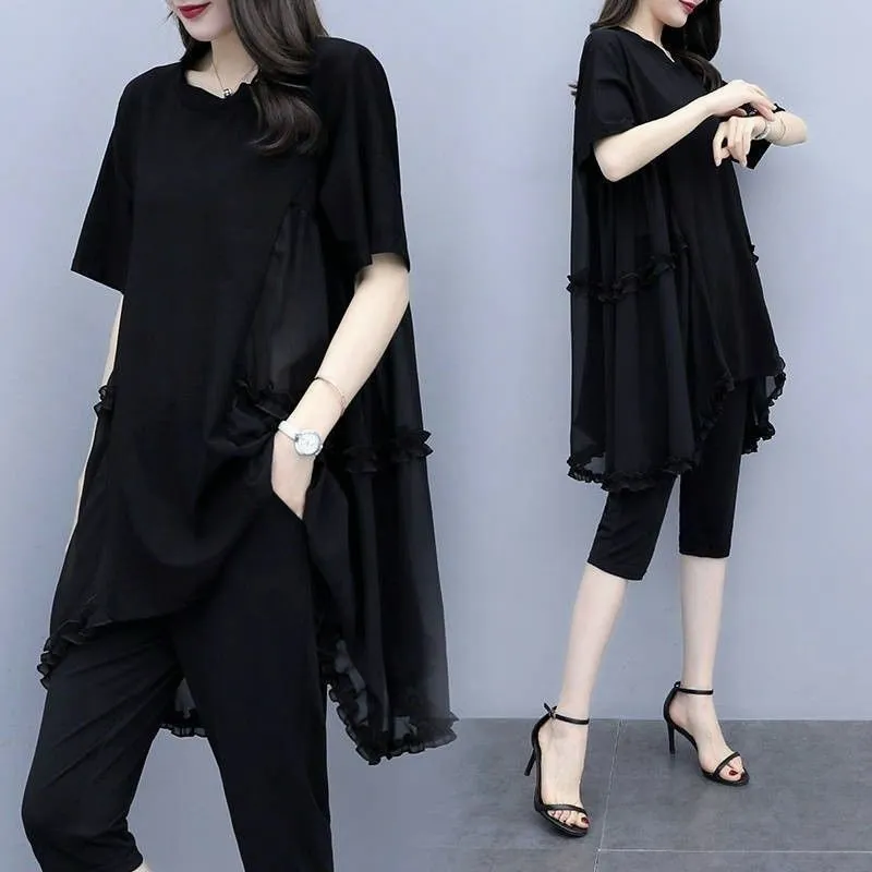 ■沖縄・離島は配送料が異なります。ご購入前にコメントをお願いいたします。 上下セット レディース セットアップ チュニック トップス クルーネック 半袖 薄手 夏 ボトムス パンツ 通勤 OL おしゃれ 大人 ゆったり シンプル カジュアル 部屋着