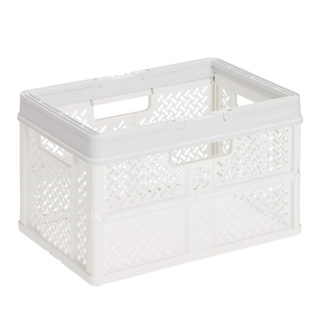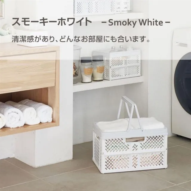 天馬(Tenma) 折りたたんでコンパクトになる持ち手付きの収納ボックス 完成品 折りたたみバスケット Lサイズ お部屋に馴染むデザインの折り畳みコンテナ オリコン カゴ B4ファイルがぴったりのバスケット プラスチック 【組立不要】 【色 スモーキーホワイト