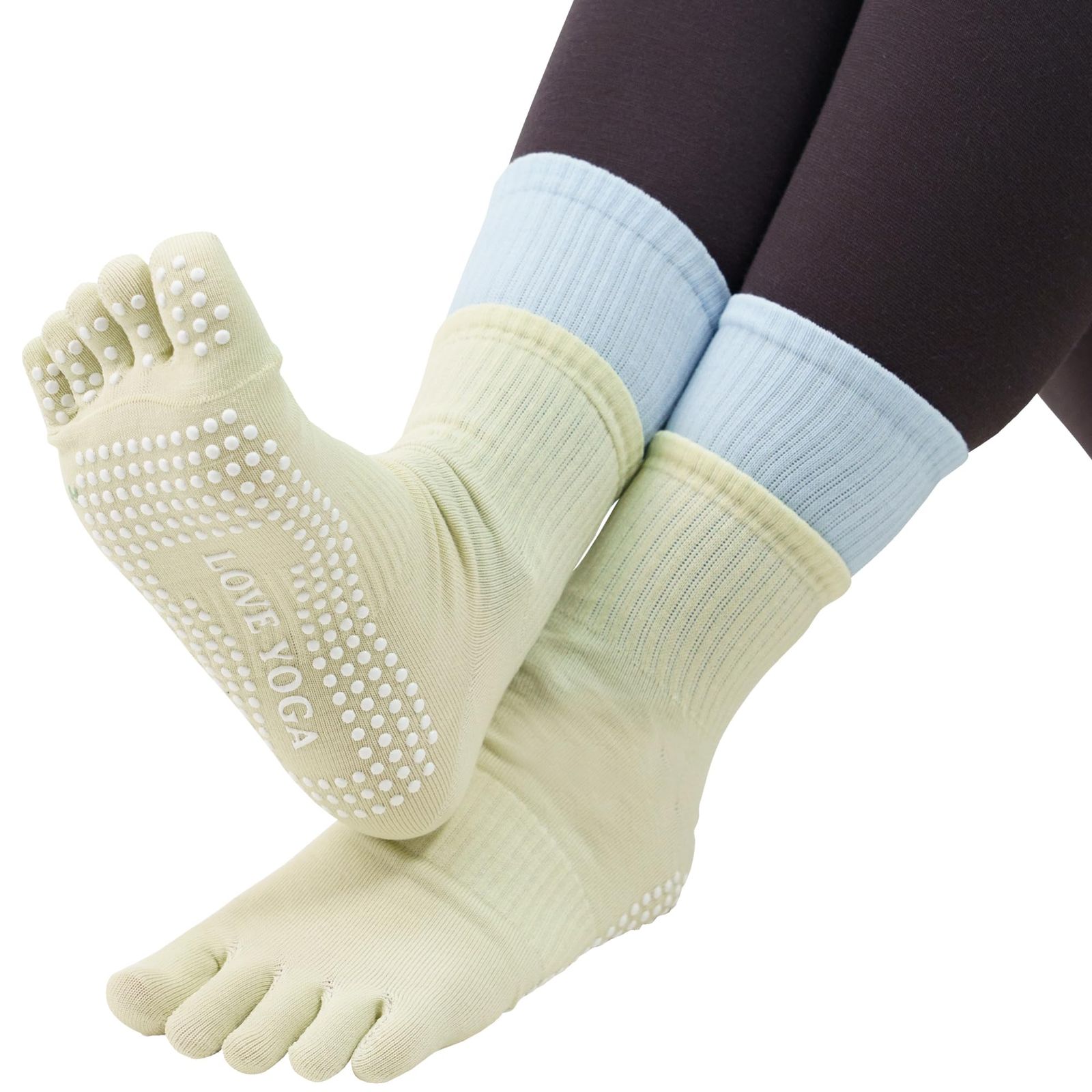 【インストラクター推薦】 ヨガソックス レディース 5本指 ソックスすべりどめ ピラティス フィットネス 靴下 ダブルカーフ 重ね履き風 靴下 おしゃれ