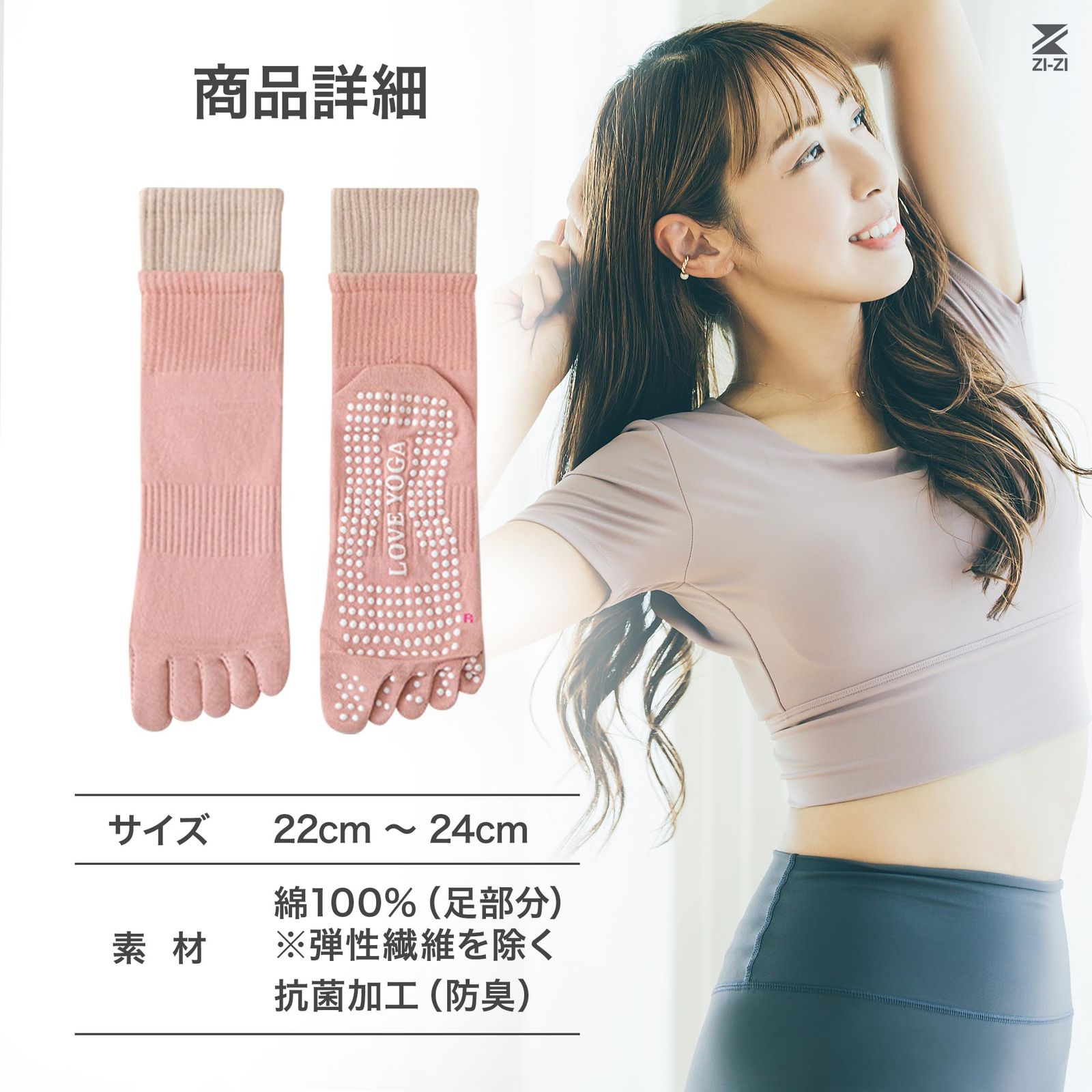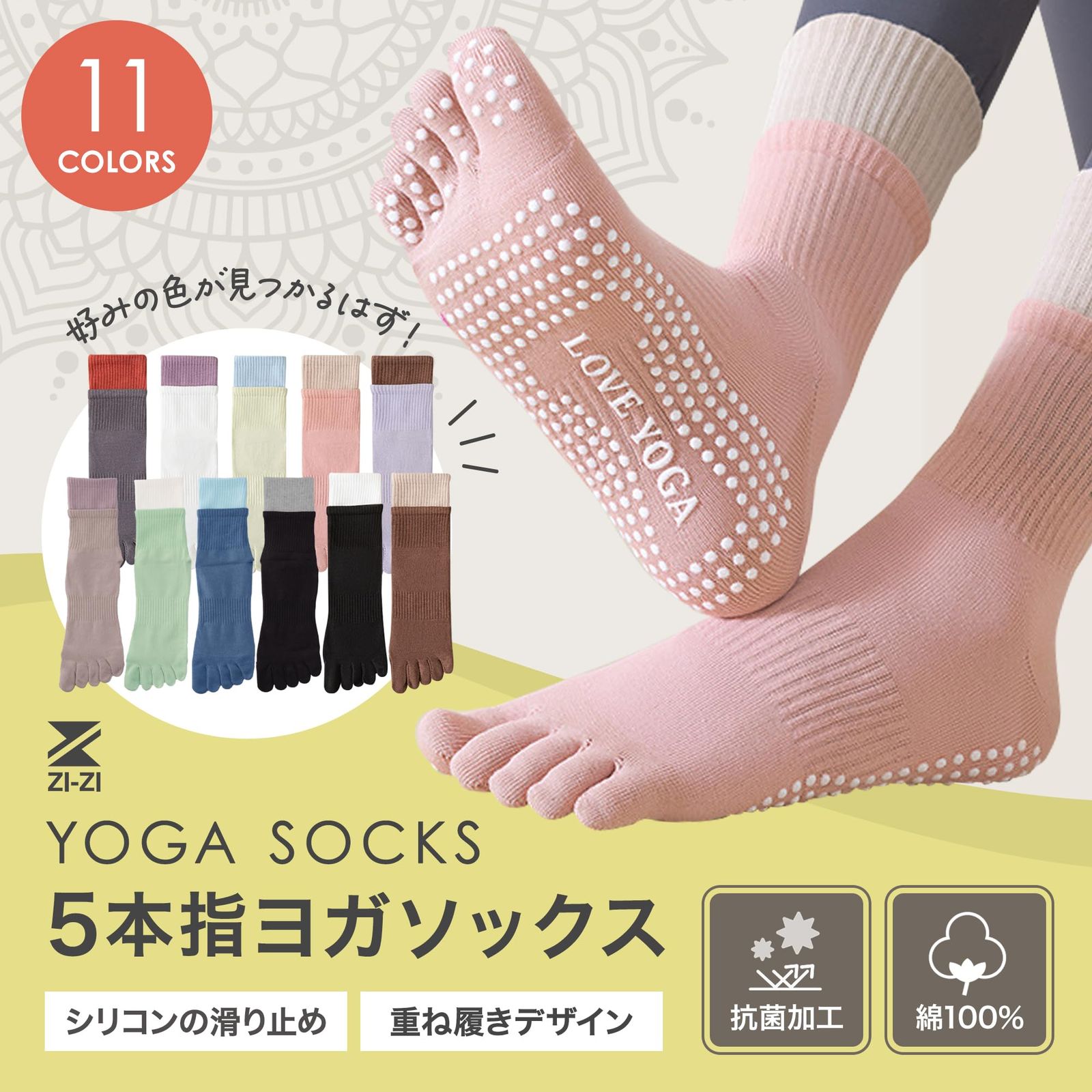 【新商品】通気性×抗菌・防臭!オシャレなヨガソックス ダブルカーフでずれ落ちしにくくツートンカラーでおしゃれ室内(フローリングなど)でのヨガ中、足裏に汗をかくととても滑りやすく危険です。ZI-ZIの5本指滑り止めヨガソックスは、強力な滑り止めにより転倒などの事故を防ぎ、足元を安定させることでヨガに集中できる便利なアイテム。汗を吸収し蒸れにくいので、気になる臭い対策にもバッチリ・ライクラ(LYCRA)素材使用で伸縮性抜群 ◎2色使いがオシャレなデザインなので、お気に入りのウェアとのコーディネートをお楽しみください。※抗菌防臭加工 最後までご確認頂き誠にありがとうございました。 ご確認頂き、ご購入いただけましたら幸いです。 何かご不明点などがございましたらお気軽にメッセージからお問い合わせ下さい。