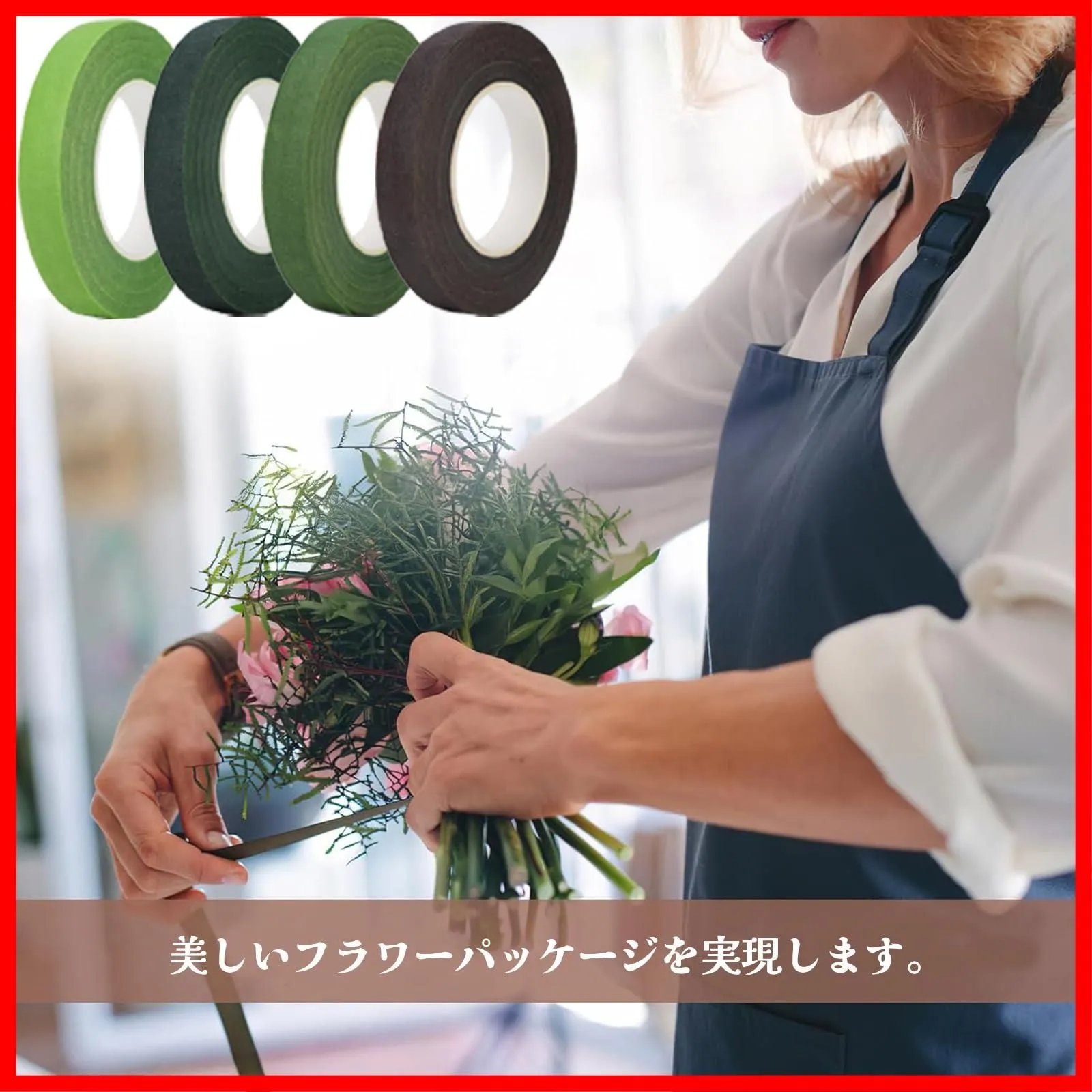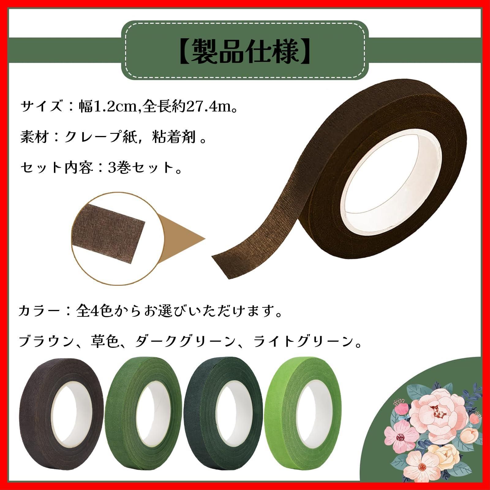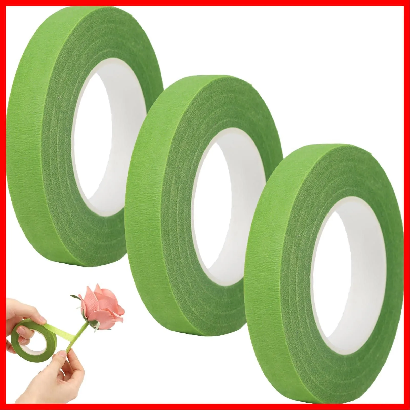 【人気商品】DIY 手芸 花材 ブーケラップ用 花屋 花の茎のラッピング用 3巻入(ライトグリーン) ドライフラワーテープ 造花 フローラテープ