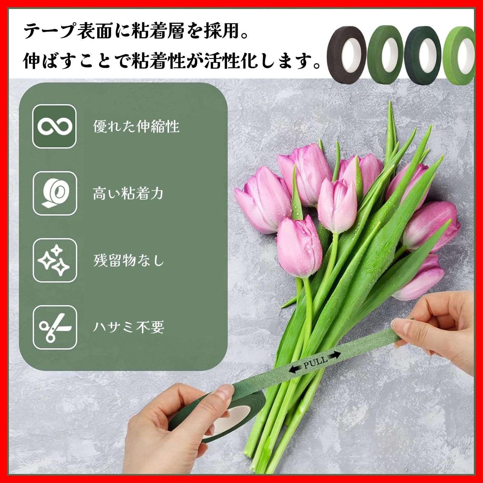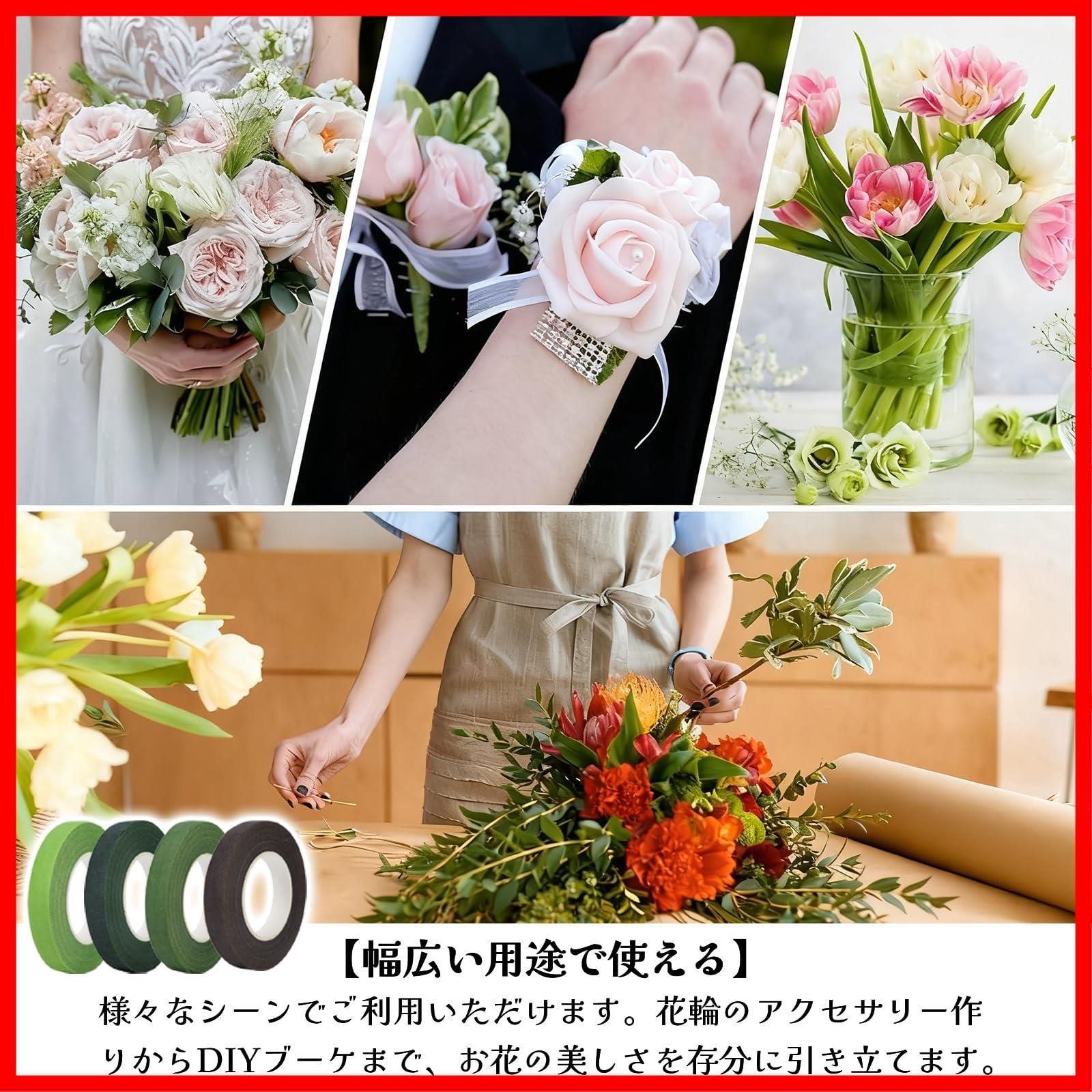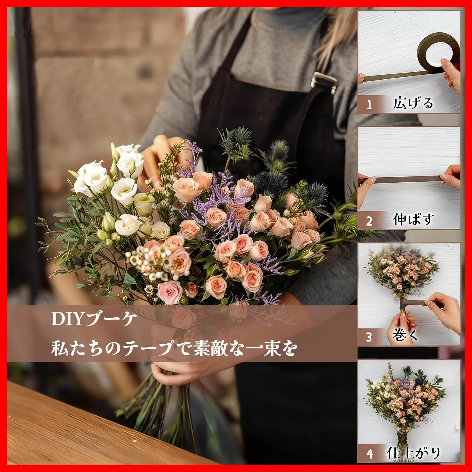 【人気商品】DIY 手芸 花材 ブーケラップ用 花屋 花の茎のラッピング用 3巻入(ライトグリーン) ドライフラワーテープ 造花 フローラテープ