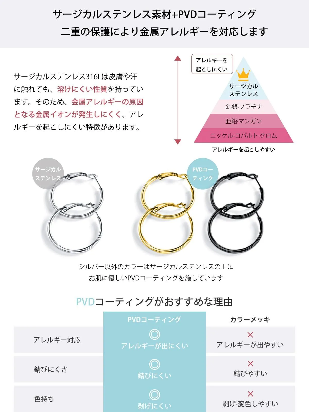 【特価セール】軽い 幅2mm シルバー ゴールド 人気 18K金 大きい 金属アレルギー対応 サージカルステンレス リングピアス 大きめ レディース フープピアス FOCALOOK