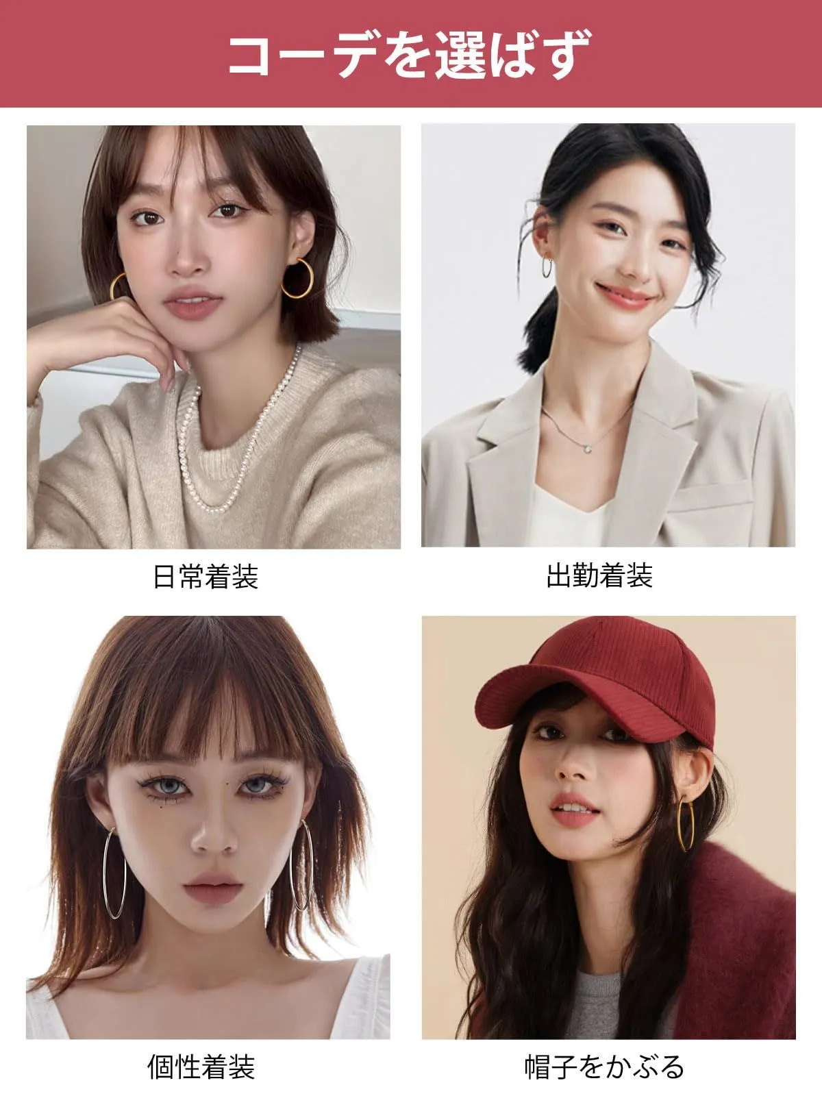 【華やかなピアスで魅力アップ】フープはいつの時代も人気の定番フープピアス。ひとつ持ってると大きさを楽しめるインパクトのあるフープピアスは、存在感と雰囲気をガラッと変えてくれる使いやすいピアスです。
