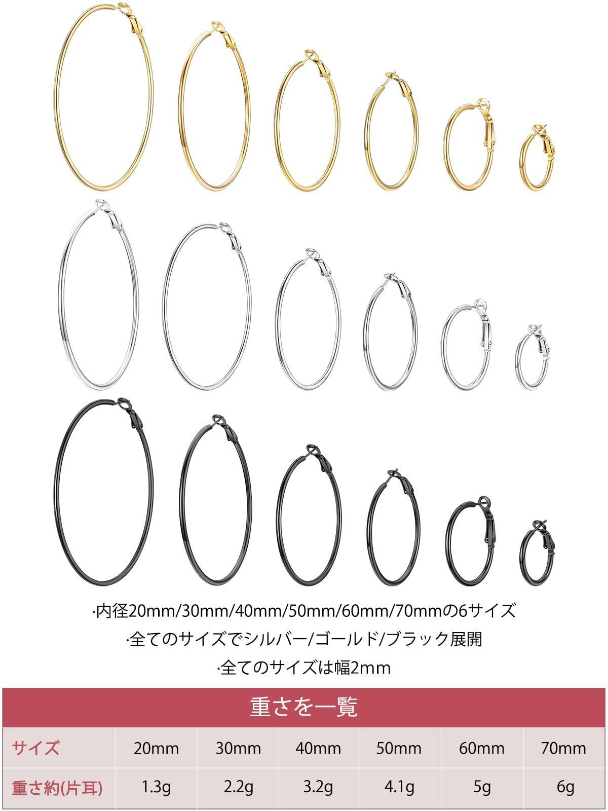 【5 種サイズ ×3 色展開、あらゆる選択をサポート】このピアスは30~70mm の 5 種類のサイズがあり、日常(やパーティーなど場面に合わせて選べます。ゴールド、シルバー、ブラックの 3 色があり、カジュアルからフォーマルまで多様な衣装にマッチし、個性を簡単に表現できます。重さ約:3.8g~10g、大きいけど、中空だから軽いです。 最後までご確認頂き誠にありがとうございました。 上記をご確認頂き、ご購入いただけましたら幸いです。 何かご不明な点がございましたらお気軽にメッセージからお問い合わせ下さい。