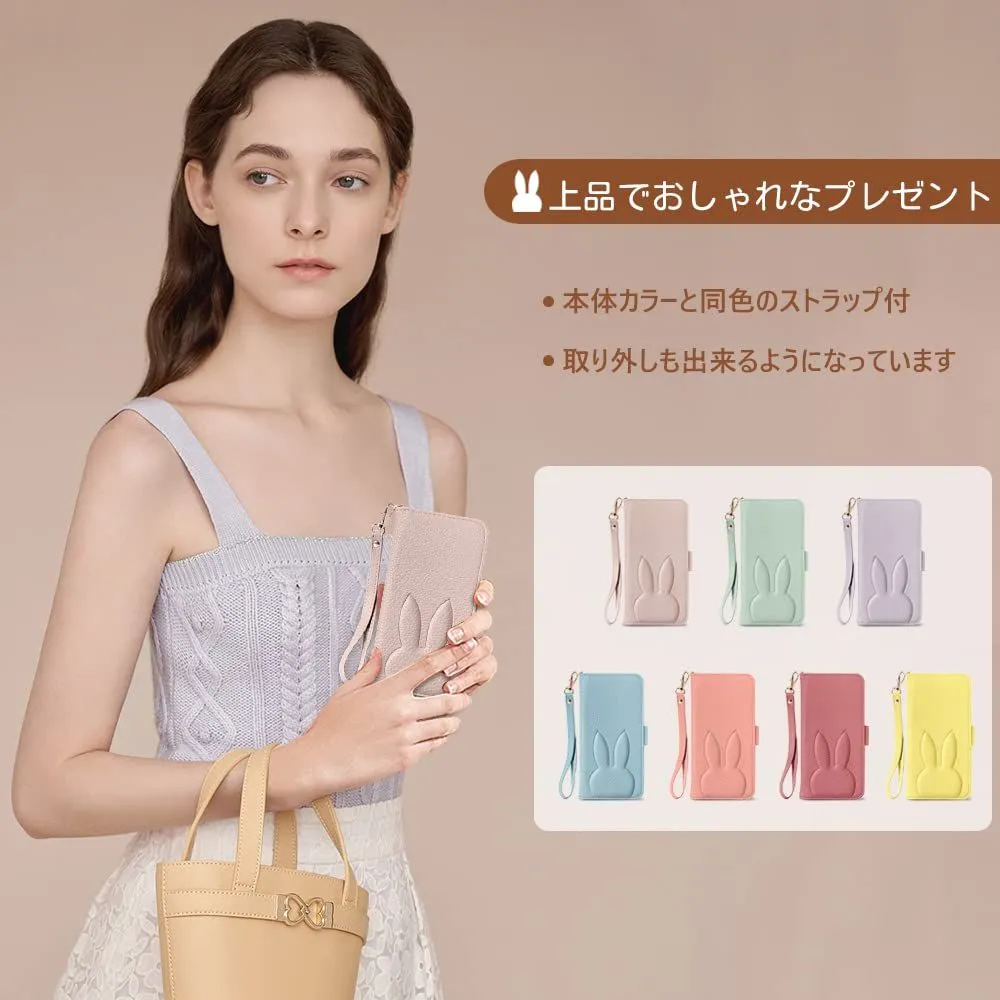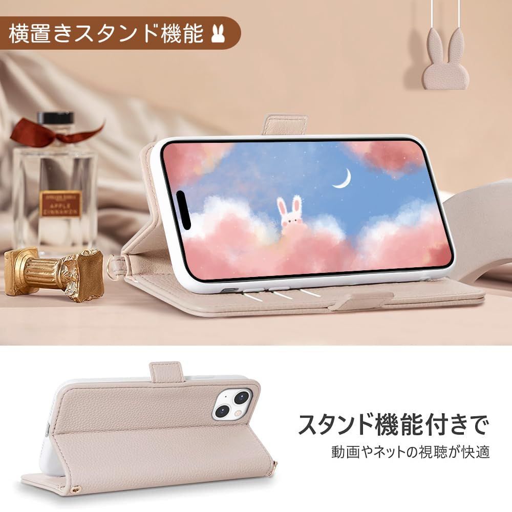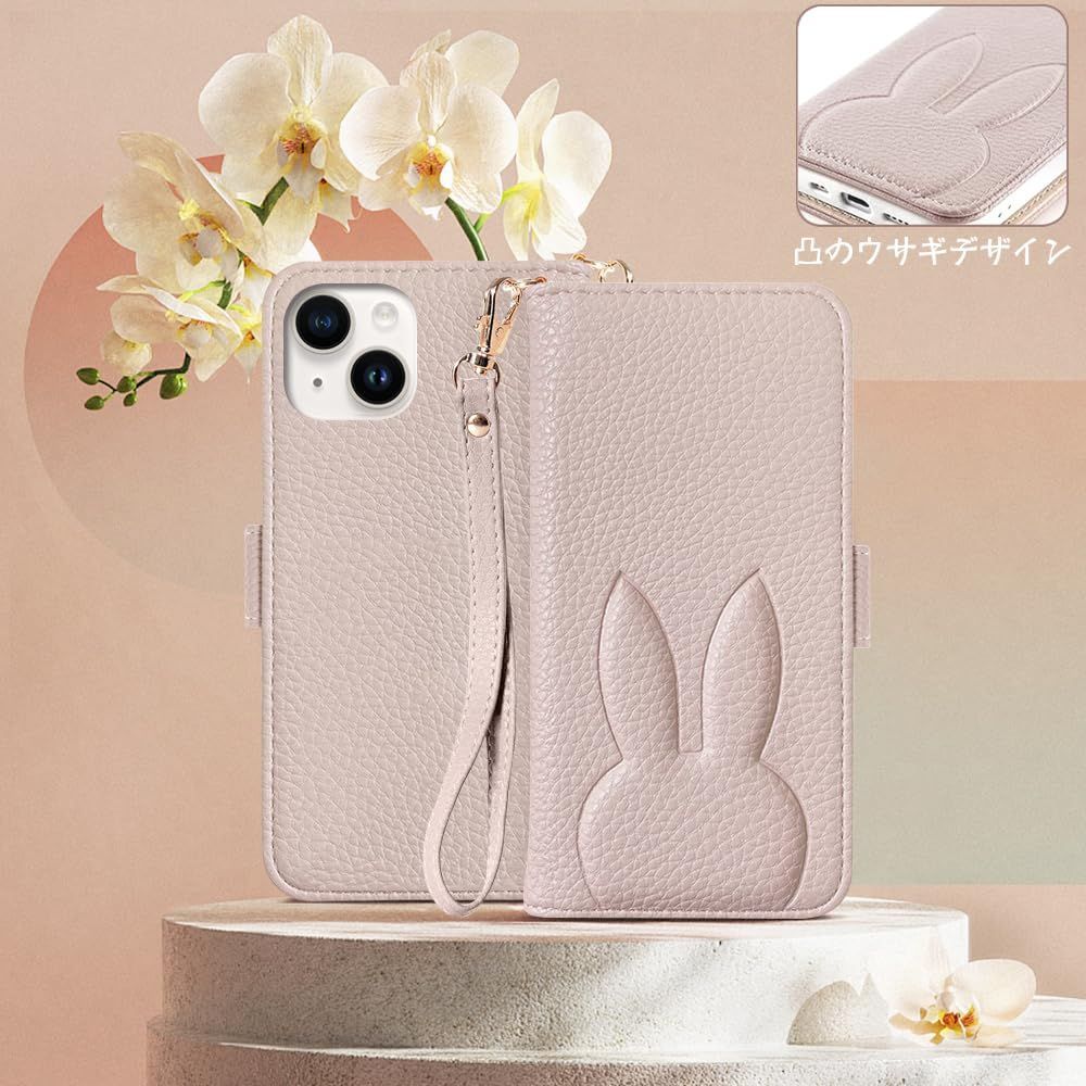 適応 いphone16E ケース 手帳型 iPhone16e ケース手帳型 かわいいカード収納 スマホケースアイフォン 16e 2025 あいふぉん16e 手帳カバー アイフォン16e 保護ケース カードポケット可愛い 兎 人気 携帯カバー レディース 女性 上品 肌触り良い(6.1)