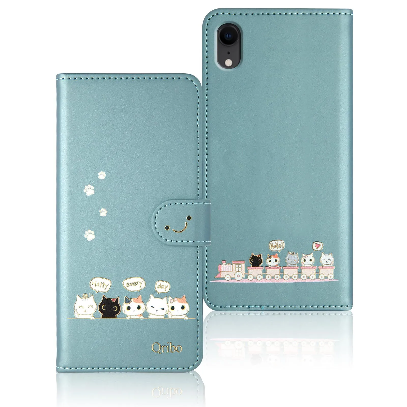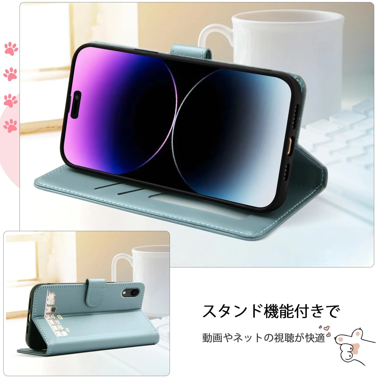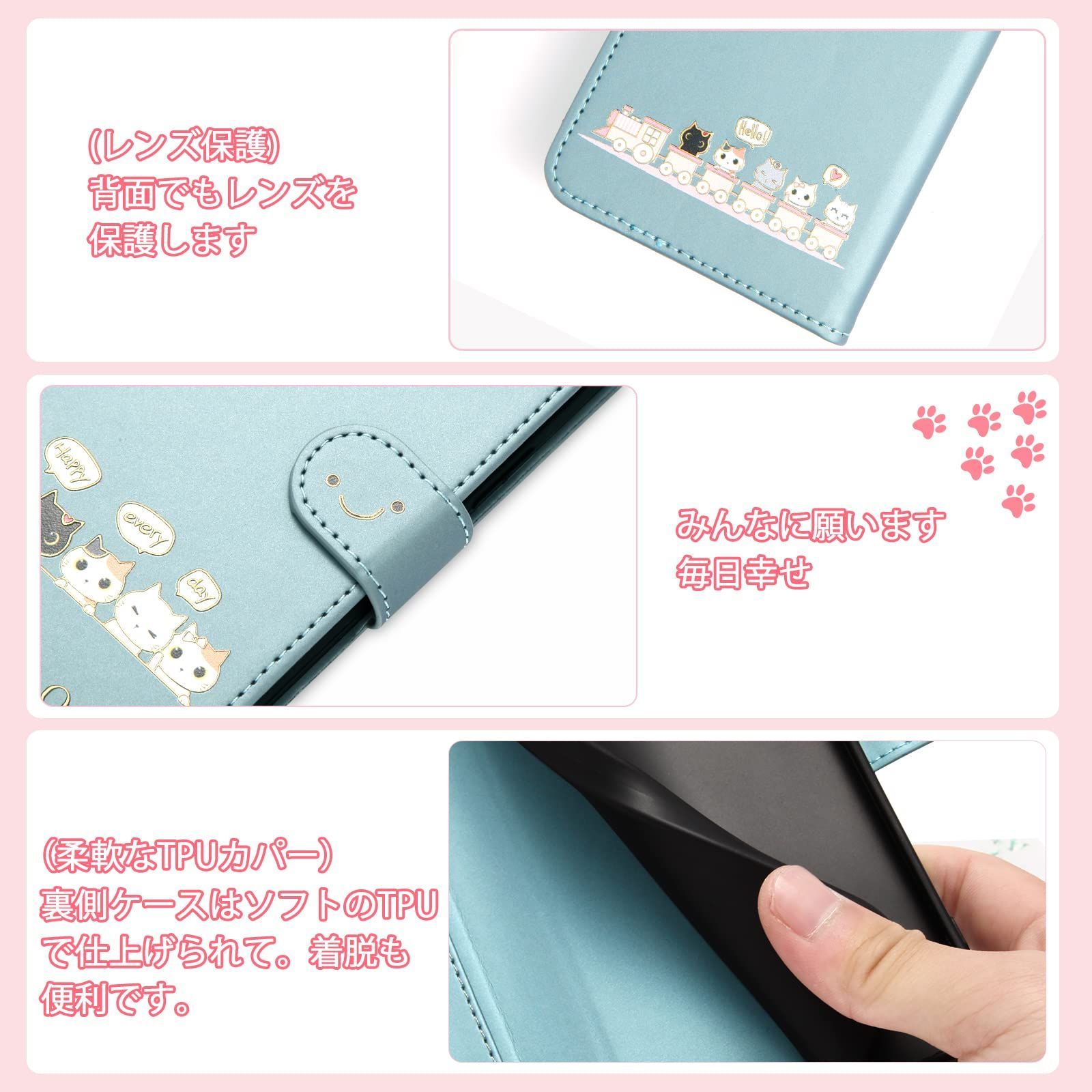 手帳型ケース 適用の iPhone 17 用の いphone17 ケース シンプルなのに可愛いデザイン エンボス加工猫柄 うれしい気持ち 6.3インチ対応 アイフォン17ケース に適合する iphone17 カバー に適合する iPhone 17 スマホケース 薄型 防水 の耐久性 滑り防止 美しい 贈り物 友達 - ブルー