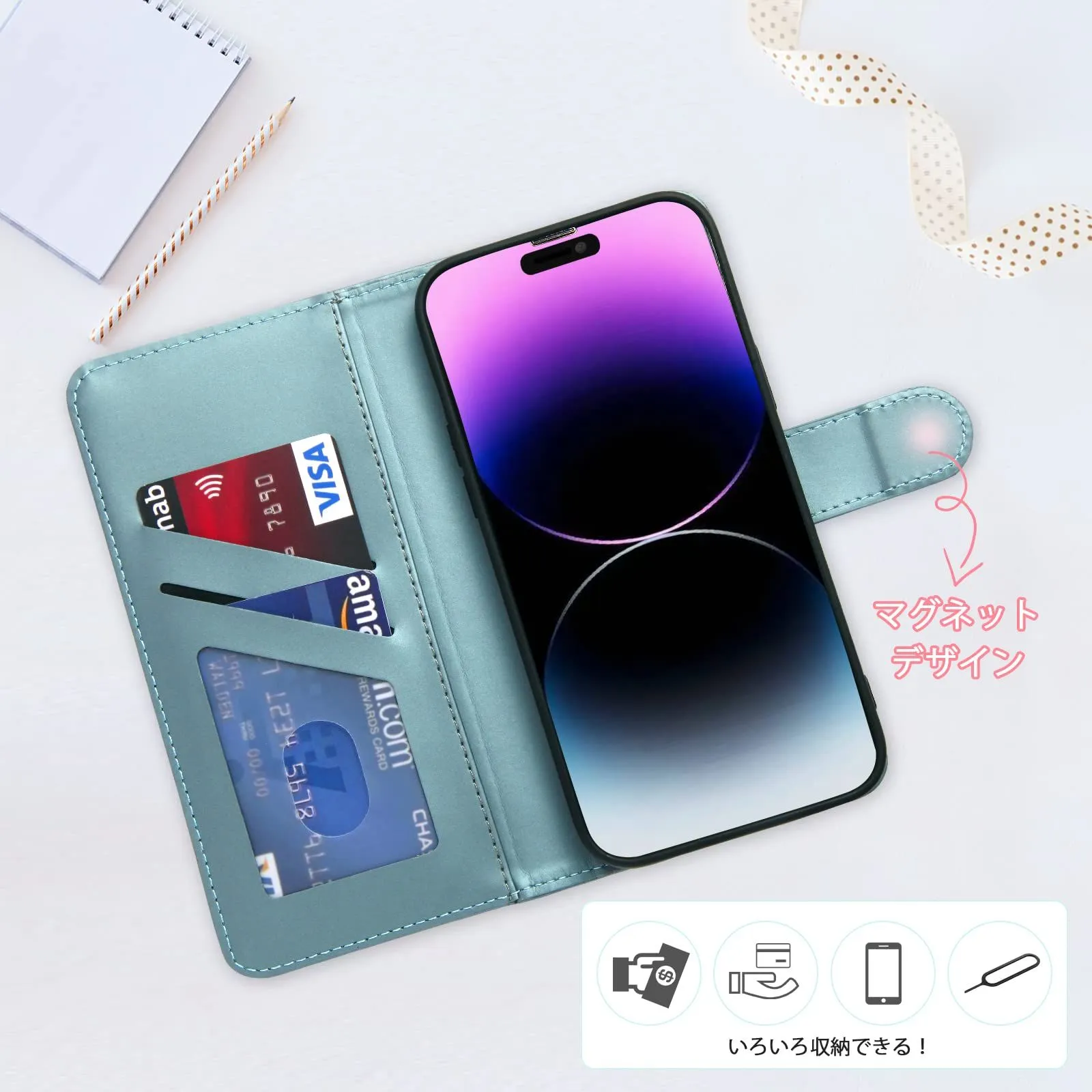 【細かい加工処理】に適合する iPhone 17 スマホケース 手帳型は右側が開いたデザインで、笑顔の模様の開閉ボタンを採用しています,使い勝手がいい,どんなシーンやファッションにも合います。これはシンプルで可愛くて実用的なデザインです。 ??