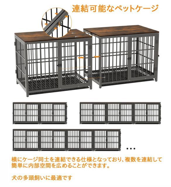 【連結可能なペットケージ】横にケージ同士を連結できる仕様となっており、複数を連結して簡単に内部空間を広めることができます。犬の多頭飼いに最適です