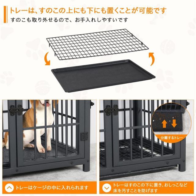 【頑丈で、耐久性抜群です】高品質なスチールと合板で作られ、重厚感のあるアイアン仕様なので、長期間使えながら、動きの激しい犬でも使えます