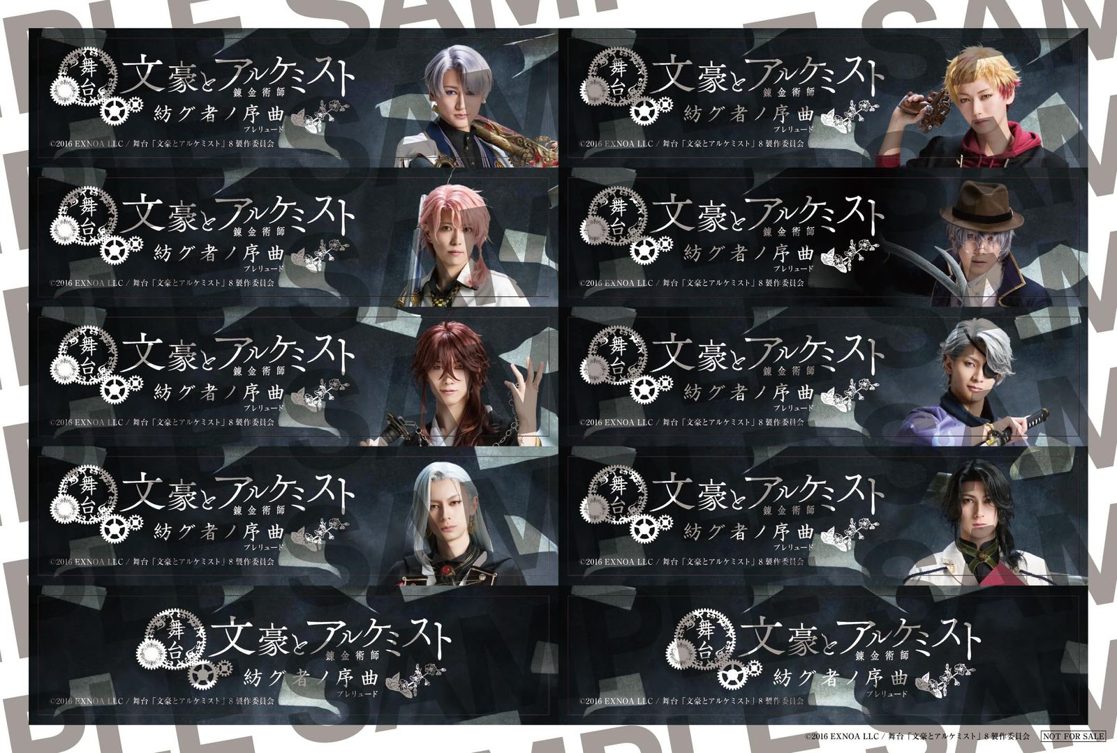 【作品内容】 「文豪とアルケミスト」とは、人々の記憶から文学が奪われる前に、 文豪と共に敵である侵蝕者から文学書を守りぬくことを目指す DMM GAMESで配信中の文豪転生シミュレーションゲームです。 2019年2月に第1弾が上演され、 本作である舞台「文豪とアルケミスト 紡グ者ノ序曲(プレリュード)」は、 シリーズ8作目となります。 脚本をなるせゆうせい、演出を吉谷晃太朗が担当します。 劇中BGMはノイジークロークの坂本英城が手掛けるゲーム楽曲を使用し、 イシイジロウもゲーム同様、世界観監修を務めます。