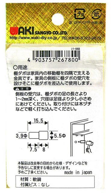 和気産業(Waki Sangyo) 差込ダボ 棚 四隅 家具 10個入 4X5.5mm if-068