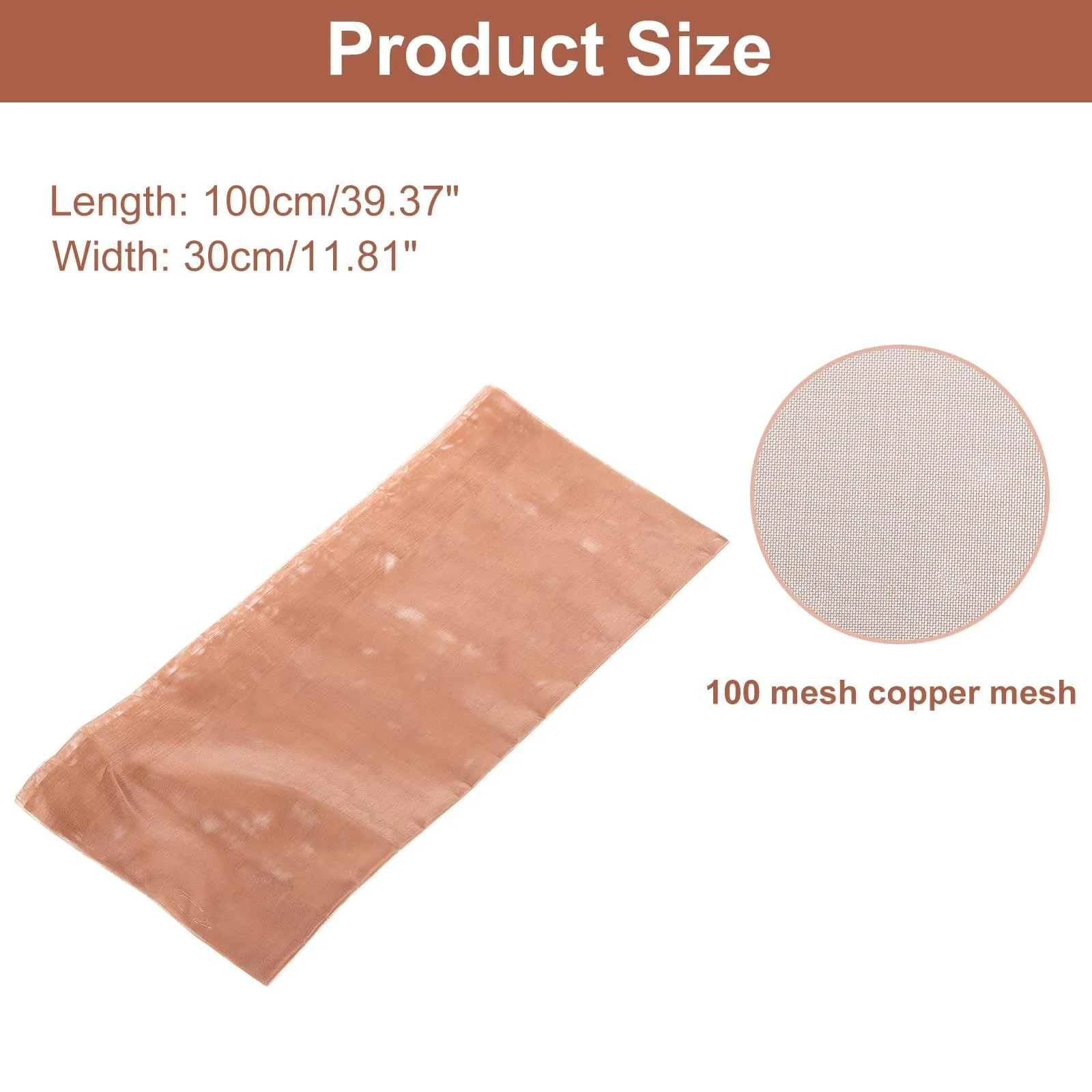 [純銅メッシュ サイズ]:銅メッシュスクリーンロールのスタイルは100メッシュ銅メッシュです。長さは1m/39.37、幅は30cm/11.81です。サイズはさまざまな装飾のニーズに十分に対応しています。