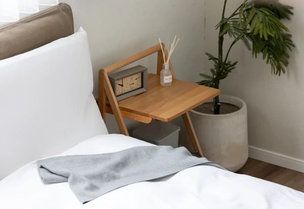 ソファ前での使用時に、手元まで引き寄せても使いやすいA字型のフレーム設計。