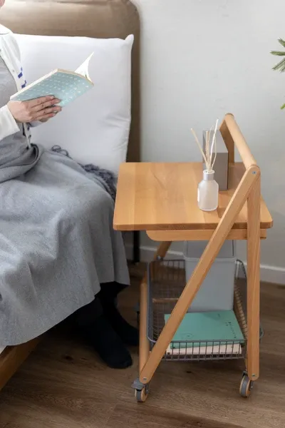 キャスター付き(ストッパー付き2個)で移動が簡単なので、ソファ前だけでなく、ソファ横やベッド横へ移動しサイドテーブルとしても便利にご利用いただけます。