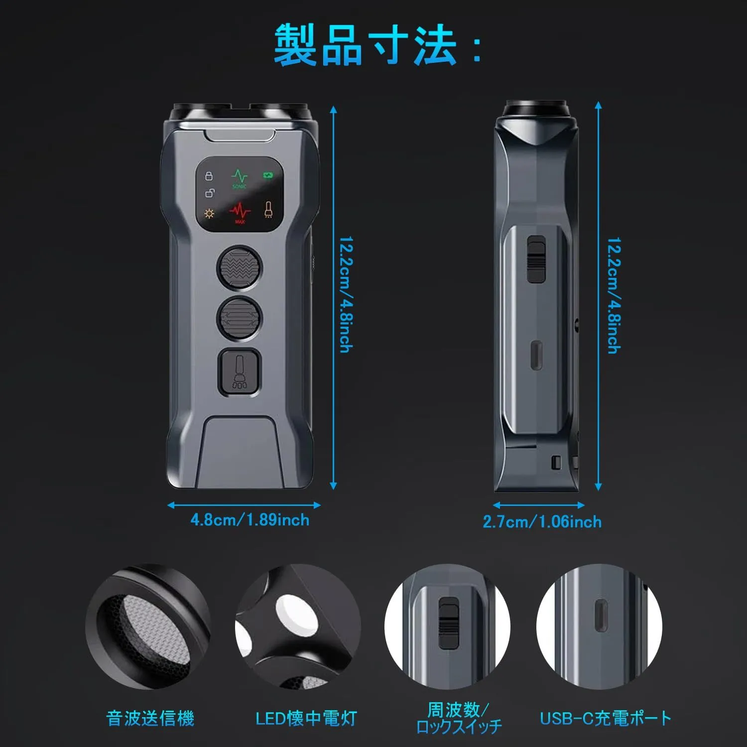 【大きい液晶画面付き】この新製品は大型LCDディスプレイを備えている。サウンドレベル、超音波レベル、バッテリー表示量、懐中電灯表示図がすべて明確に表示されます。使いやすく、操作も簡単 注意注意!!本製品の使用中に問題が発生した場合は、すぐにご連絡ください。本製品には1年間の返品・交換ポリシーとが付いています。 最後までご確認頂き誠にありがとうございました。 上記をご確認頂き、ご購入いただけましたら幸いです。 何かご不明な点がございましたらお気軽にメッセージからお問い合わせ下さい。