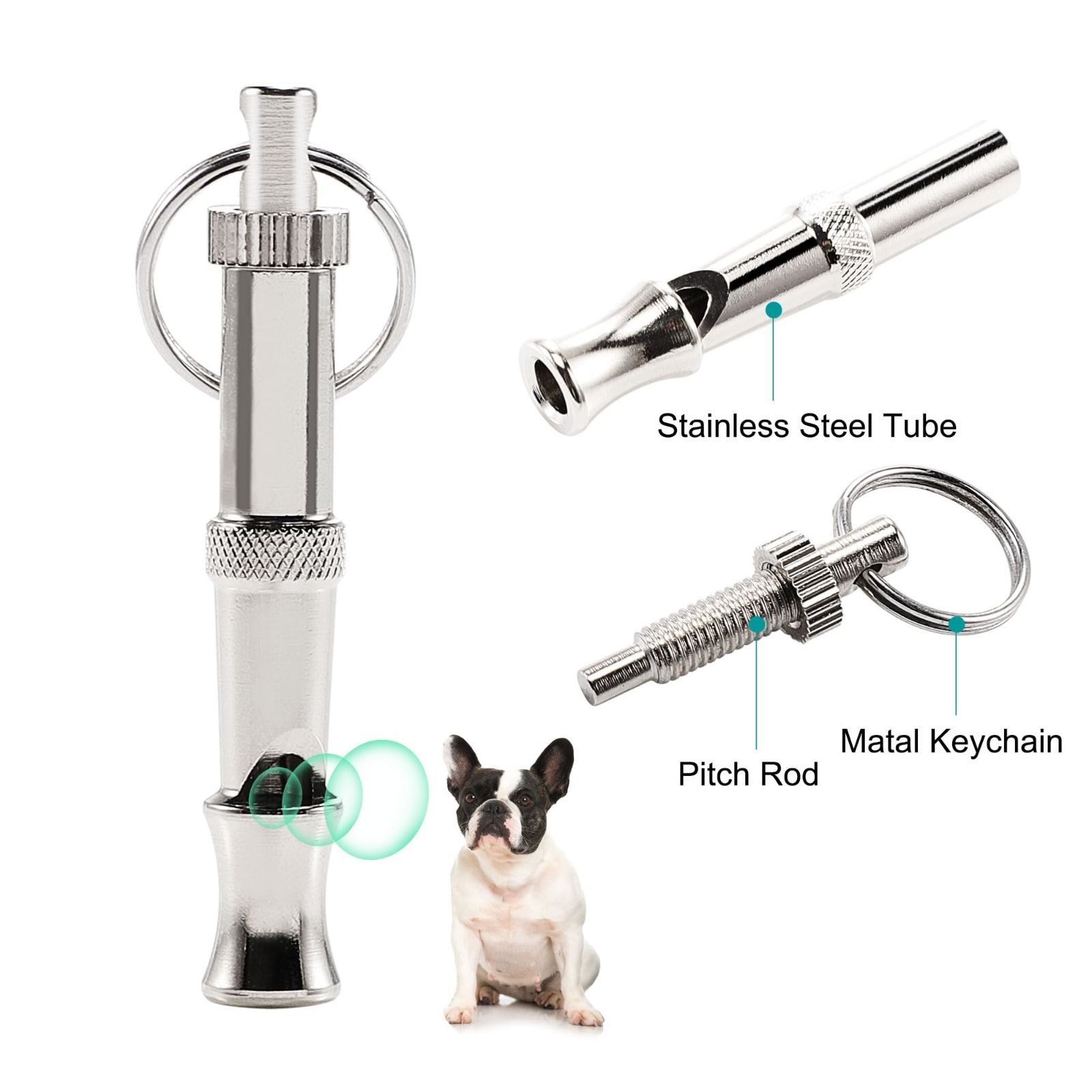 uxcell 無駄吠え防止犬笛 キーチェーン付き 調整可能な音ピッチ犬笛 悪い行動防止のためのプロのリコール ペット 子犬 猫犬 トレーニングホイッスル シルバートーン 1個