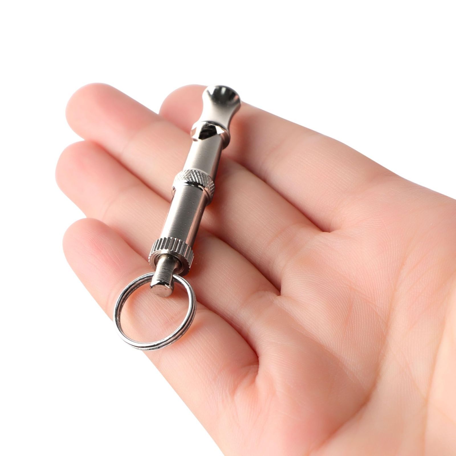 複数の着用可能: シルバートーンの犬用トレーニングホイッスルは金属製で、スプリットリングが組み込まれており、キーホルダーや首の紐に付けて着用できます。