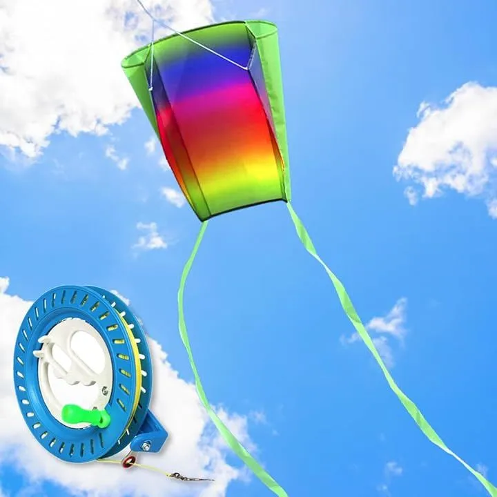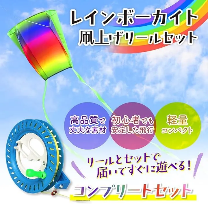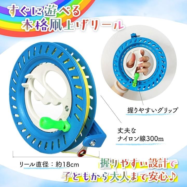 SALUDABLE カイト 凧 糸巻き機 糸巻きリール たこあげ よく飛ぶ 収納袋 すぐ遊べるセット (レインボー リール Bセット)