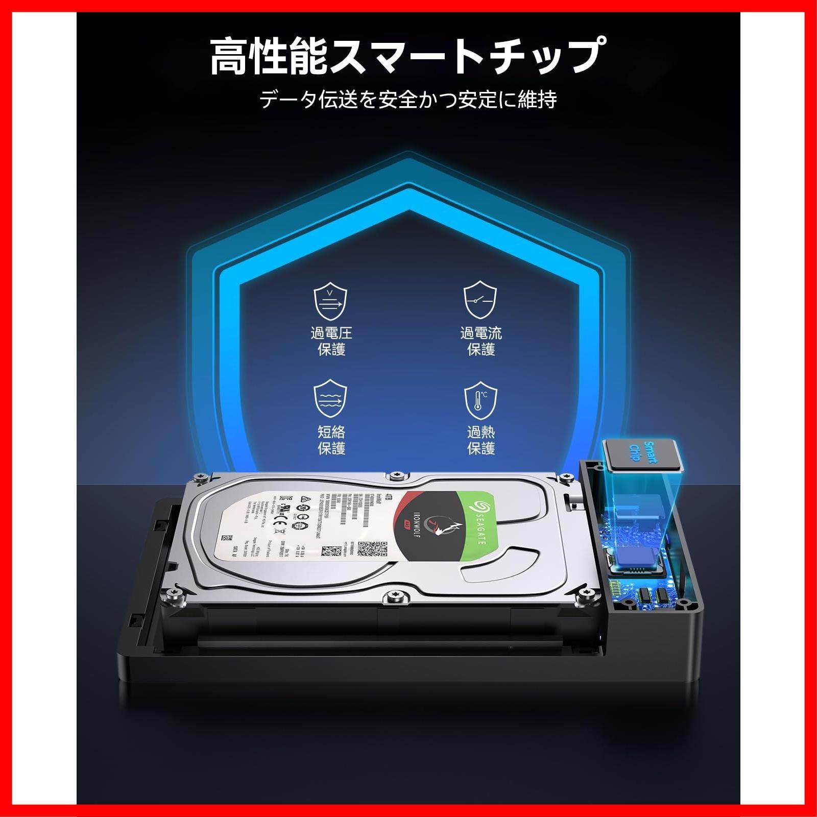 【大容量支持】最大20TBまでのハードディスクをサポートさせます。2.5/3.5インチのSATA HDD/SSD対応、内部に5mmの緩衝マットあり、振動からご貴重なHDDをちゃんと守ります。