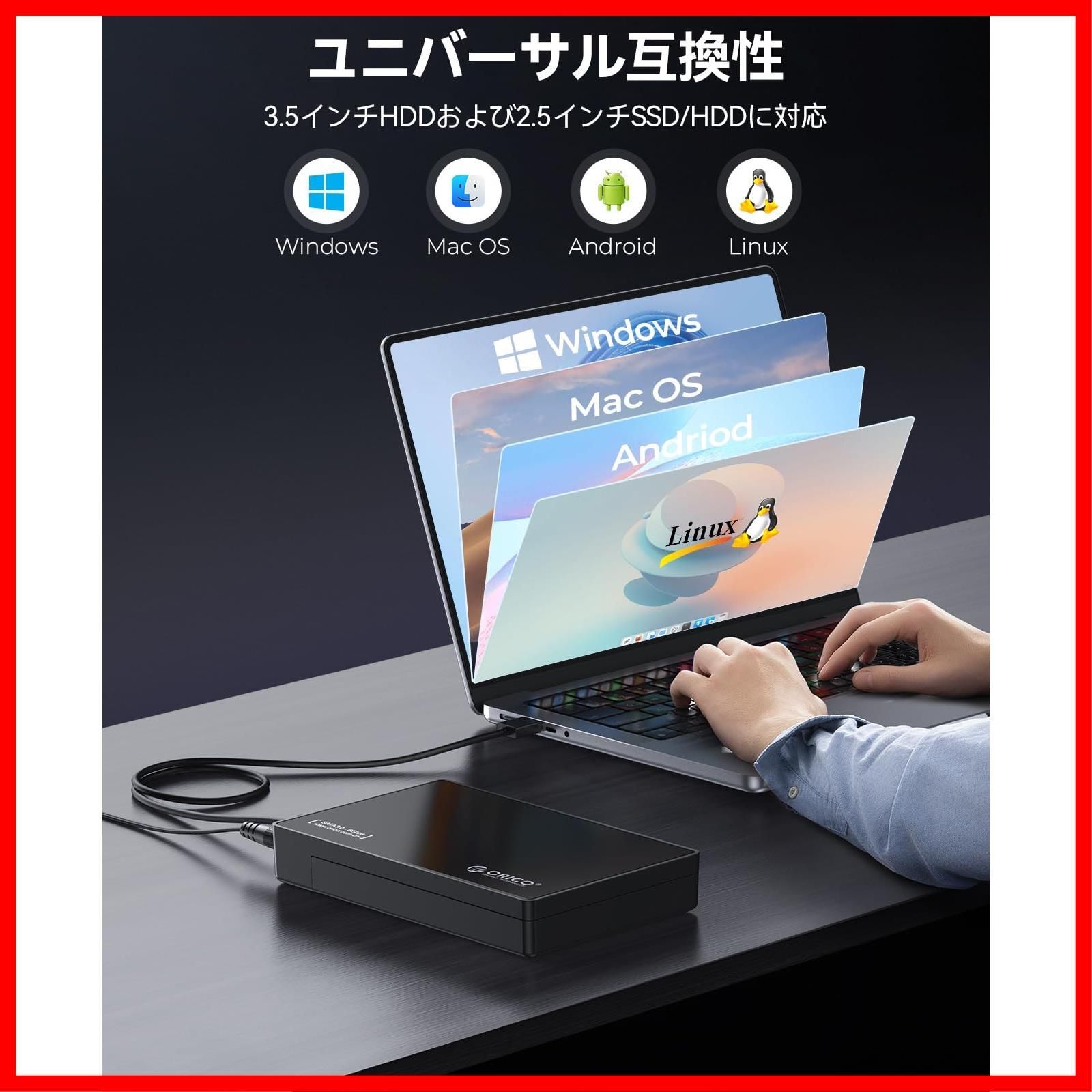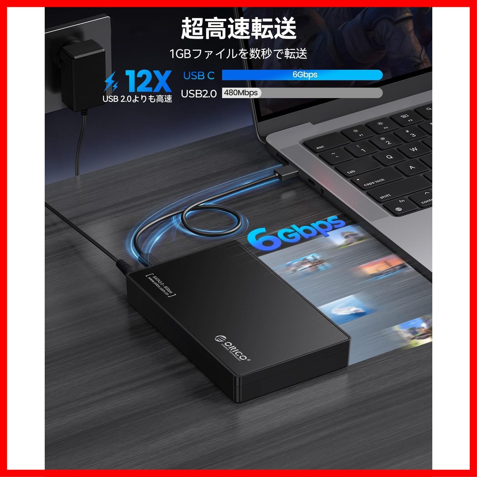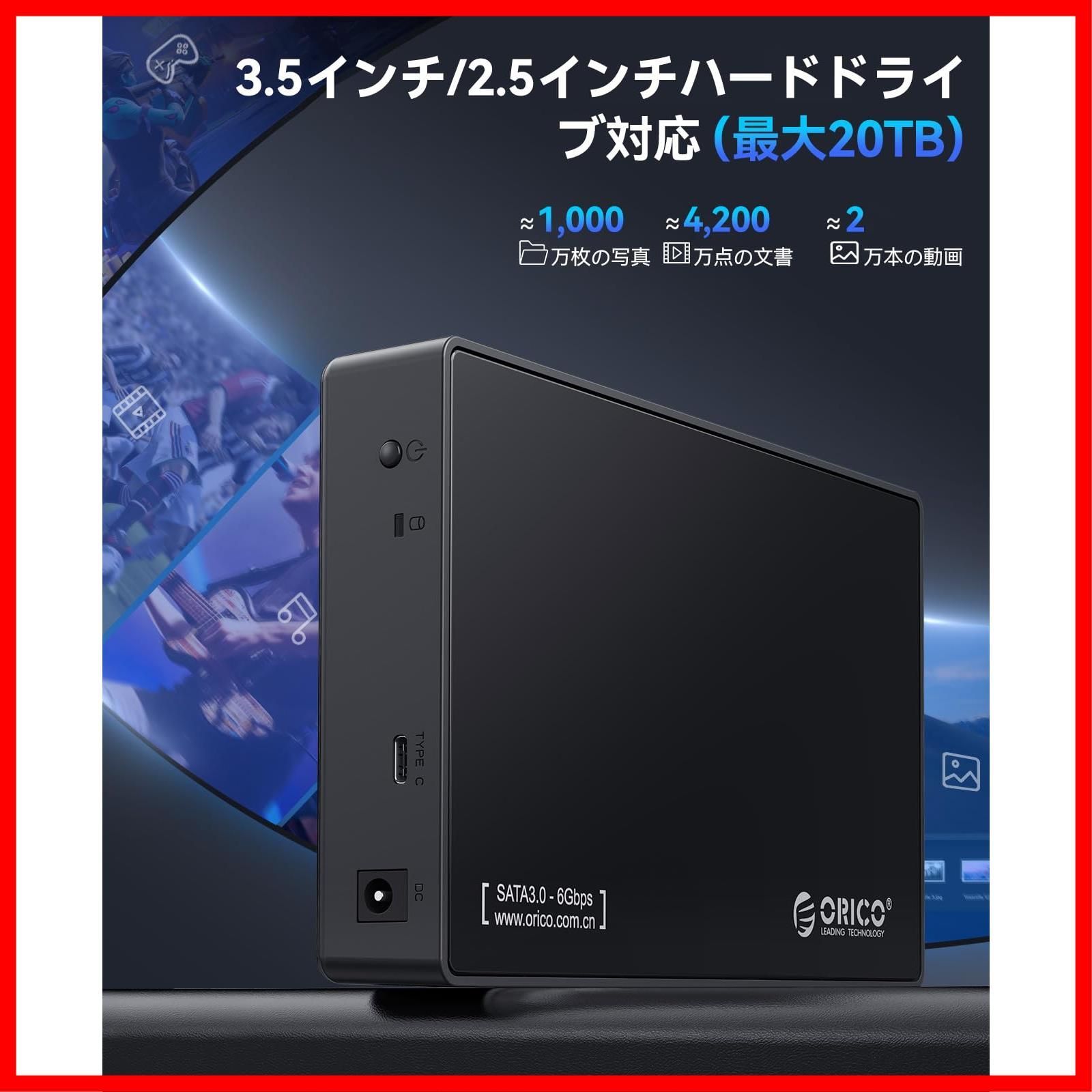 ORICO USB-C 3.5インチ HDDケース USB3.1 ハードディスクケース SATA3.0 外付け ケース 20TBまで 2.5 / 3.5 両方対応 USB3.0 5Gbps伝送 UASP高速 ツール不要 ブラック 3588C3-BK