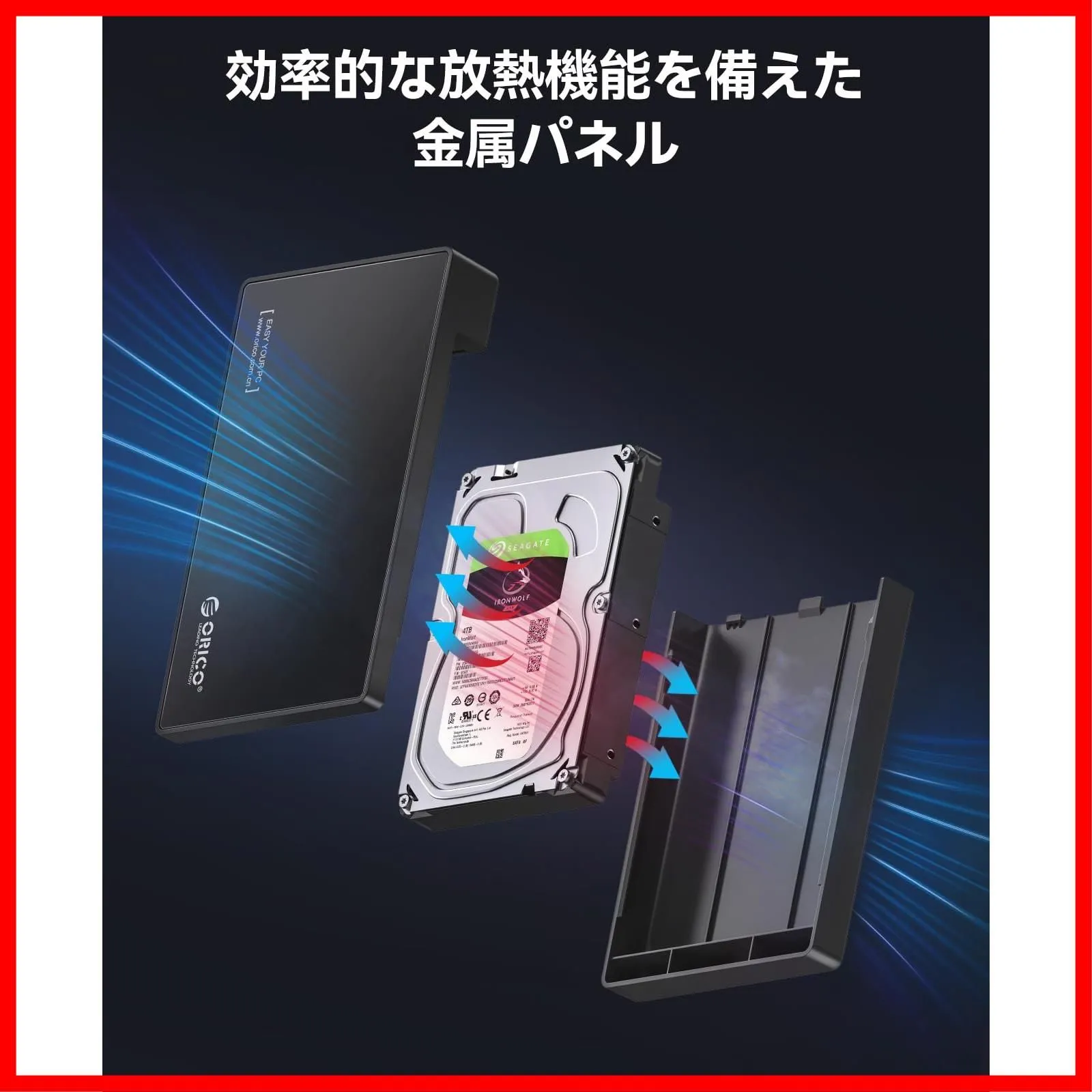 【安全保護】金属製パネルにより、優れた放熱性と耐圧性を持っています。内部に絶縁膜付、静電気による損傷を軽減し、データを保護させます。