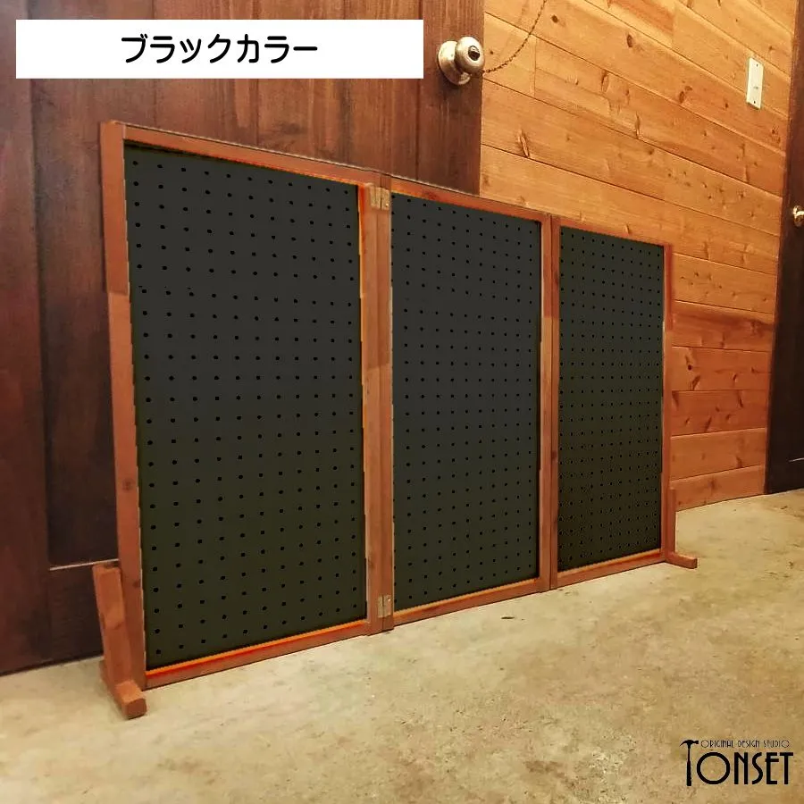 【受注生産商品】:製作納期 約5〜6日 穴あきパネルを3枚連結したイベント什器です。 上辺を三角に屋根モチーフにしたバージョンとは別に、収容量優先!でまっすぐのままにしたバージョンです。 穴あきパネルを使っているので専用の金物で自由に商品のレイアウト展示ができるようになっています!(※金物はお客様でご準備ください。) 抜き差しができる特殊な丁番を使っているので、パネルを分離することが可能ですので、1枚単独での使用や2連結での使用などもできるため汎用性も高く、付属のスタンド脚で自立しますので簡単に展示展開ができます。 もちろん折り畳み可能ですので、収納性もよく運搬も簡単です。 パネルの色も裏表で違う色、さらに3枚とも違う色などにすることも可能ですし、統一することも可能です。(※オプションからお選びください。) また「表・裏・表」や「裏・裏・表」のような組み合わせ方もできるので、いろんなレイアウトを表現することも可能になっています!! ★パネルカラーについて★ 商品名のカラー名は「片面のみ」の色です。裏面は画像3枚目の通り素地のままとなっておりますのでご注意ください。 両面に色を塗りたい場合は追加料金となりますので、事前にお問合せくださいませ。 ★製品概要★ ・サイズ:(本体)約幅970mm×奥行150mm×高さ622mm ・使用木材:スギ、合板 ・使用塗料:水性ステイン塗料、水性アクリル塗料 ★使用上のご注意★ ・こちらは自然素材を使用した製品となりますので、経年劣化で現状より木部同士の隙間が大きくなる可能性もあります。 ・商品によって多少のサイズ誤差、木部同士の隙間の大小、塗装ムラなどがございますが、手作り品の味や雑貨特有のラフさの演出としてご理解ください。 ・棚部分にはあまり重たいものを載せないでください。安定感が損なわれたり、棚が破損する可能性が高くなります。 ・特に防水性のある塗料を塗布してませんので、屋外での使用は雨濡れにはご注意ください。 価格を抑えるために下記の部分を省略製作していますのでご確認ください。