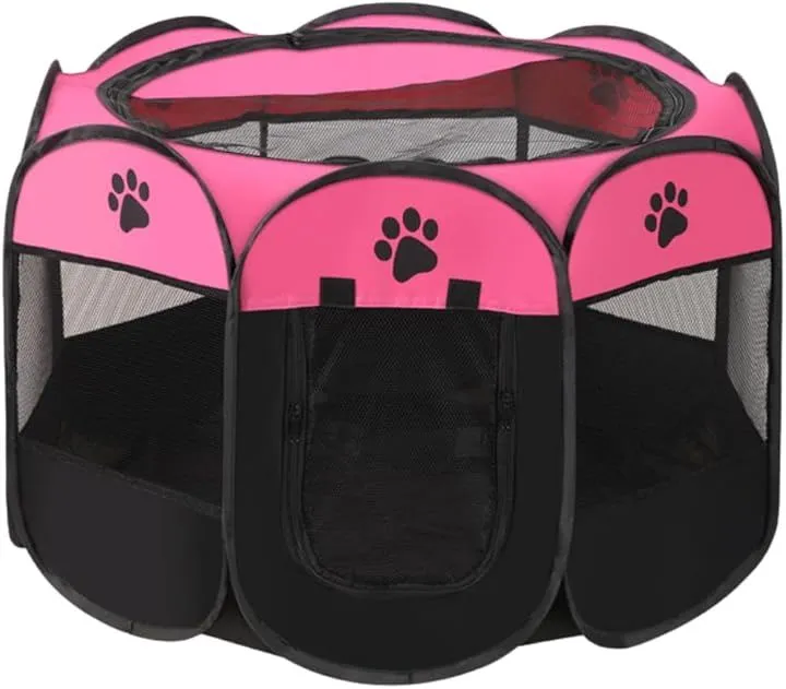 Natsume shopping mall ペットサークル 折りたたみ 防水 犬 猫 用 ドッグハウス 室内 屋外 メッシュ 大型 頑丈 防臭 (ローズピンク, Lサイズ)
