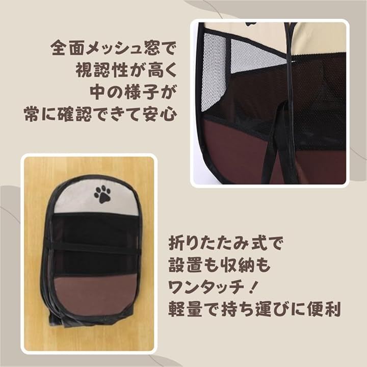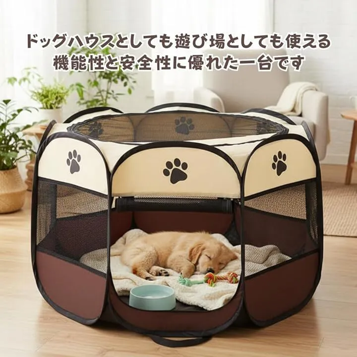 「利便性・アウトドア重視」ワンタッチでどこでもドッグハウス 折りたたみ式で設置も収納もワンタッチ。軽量で持ち運びに便利なペットサークルは、キャンプやアウトドア、旅行、帰省に最適です。