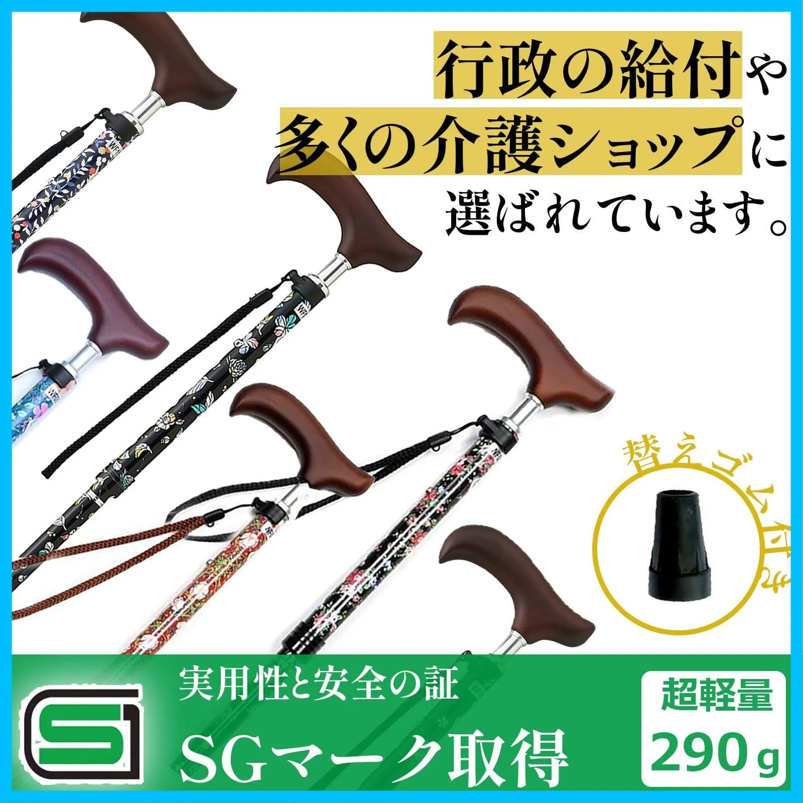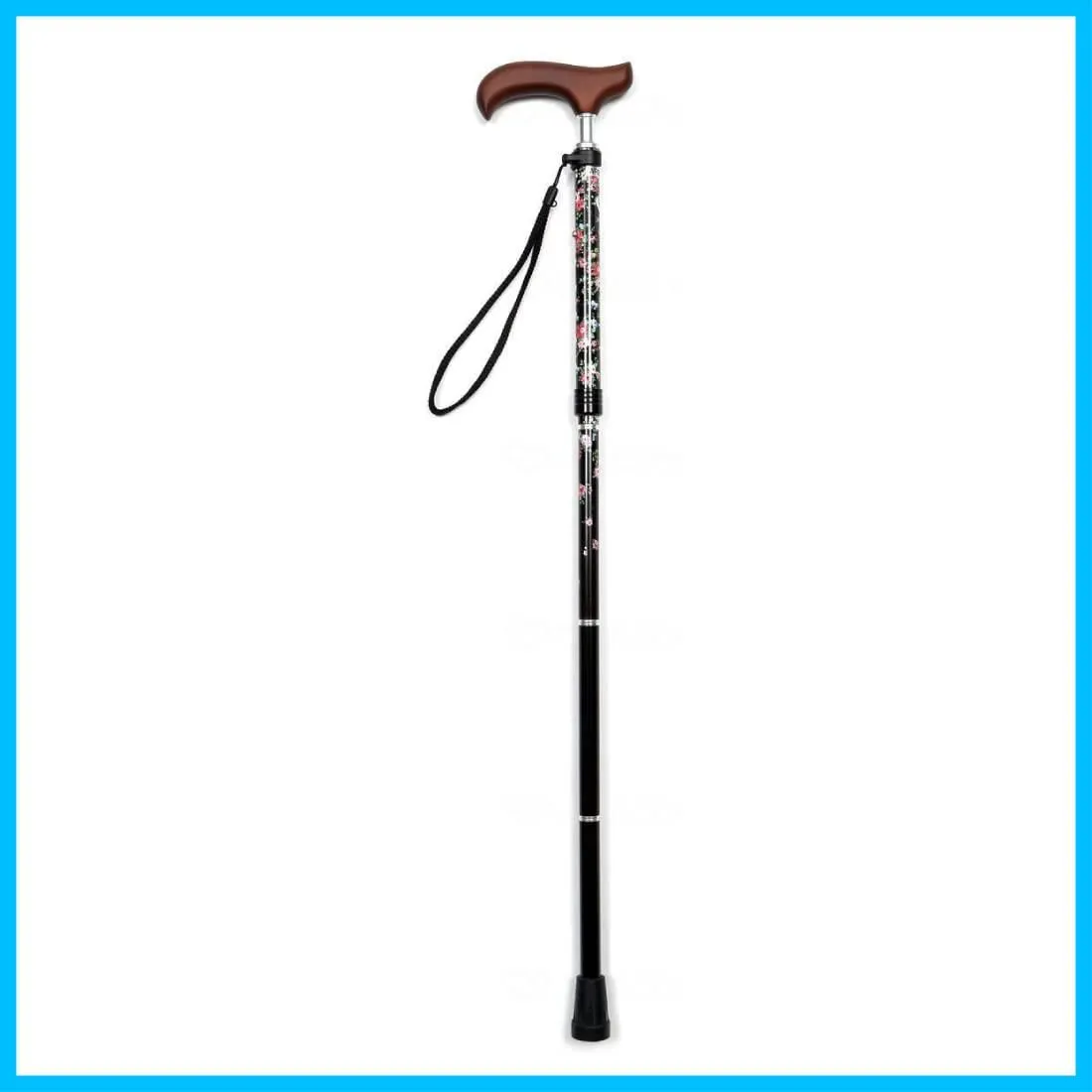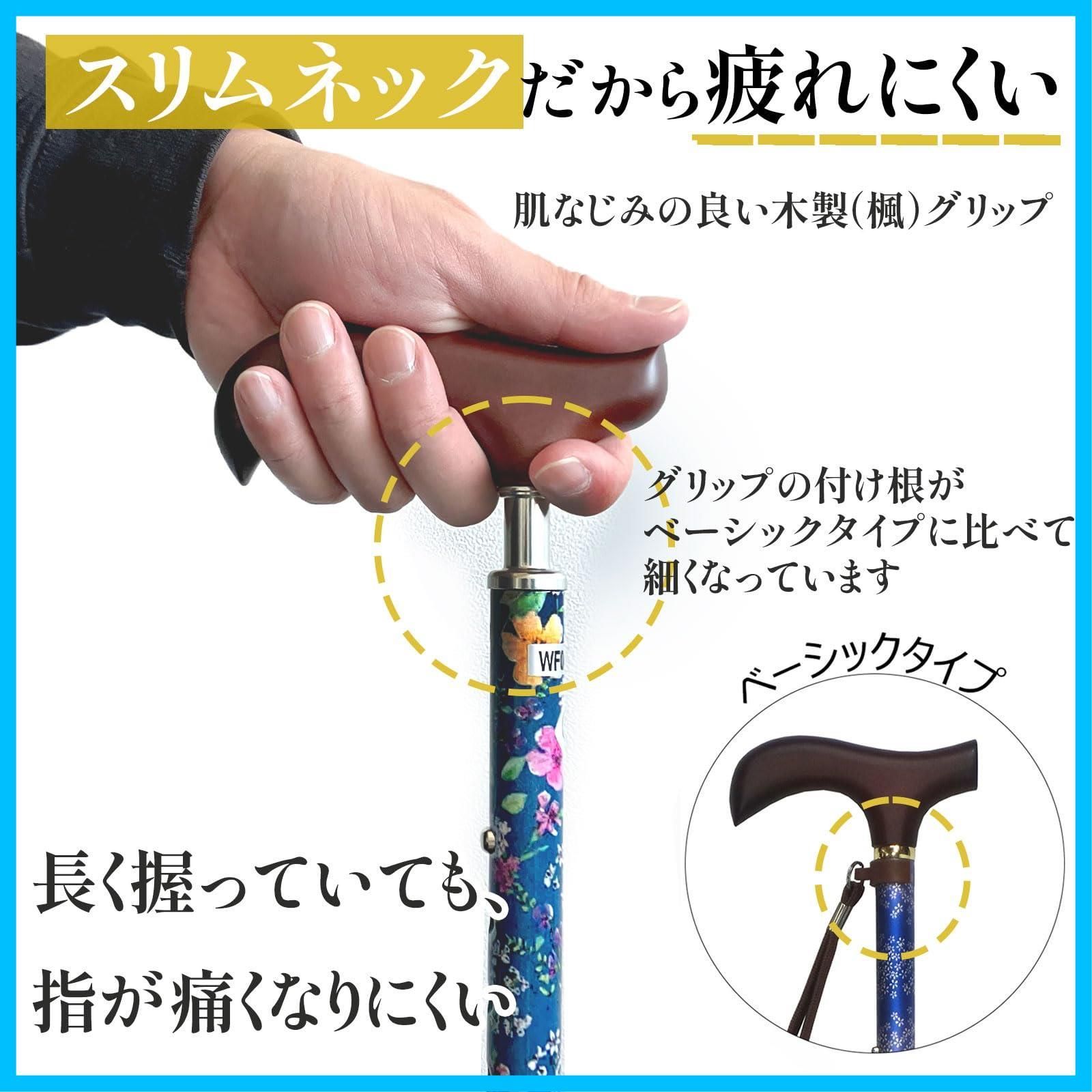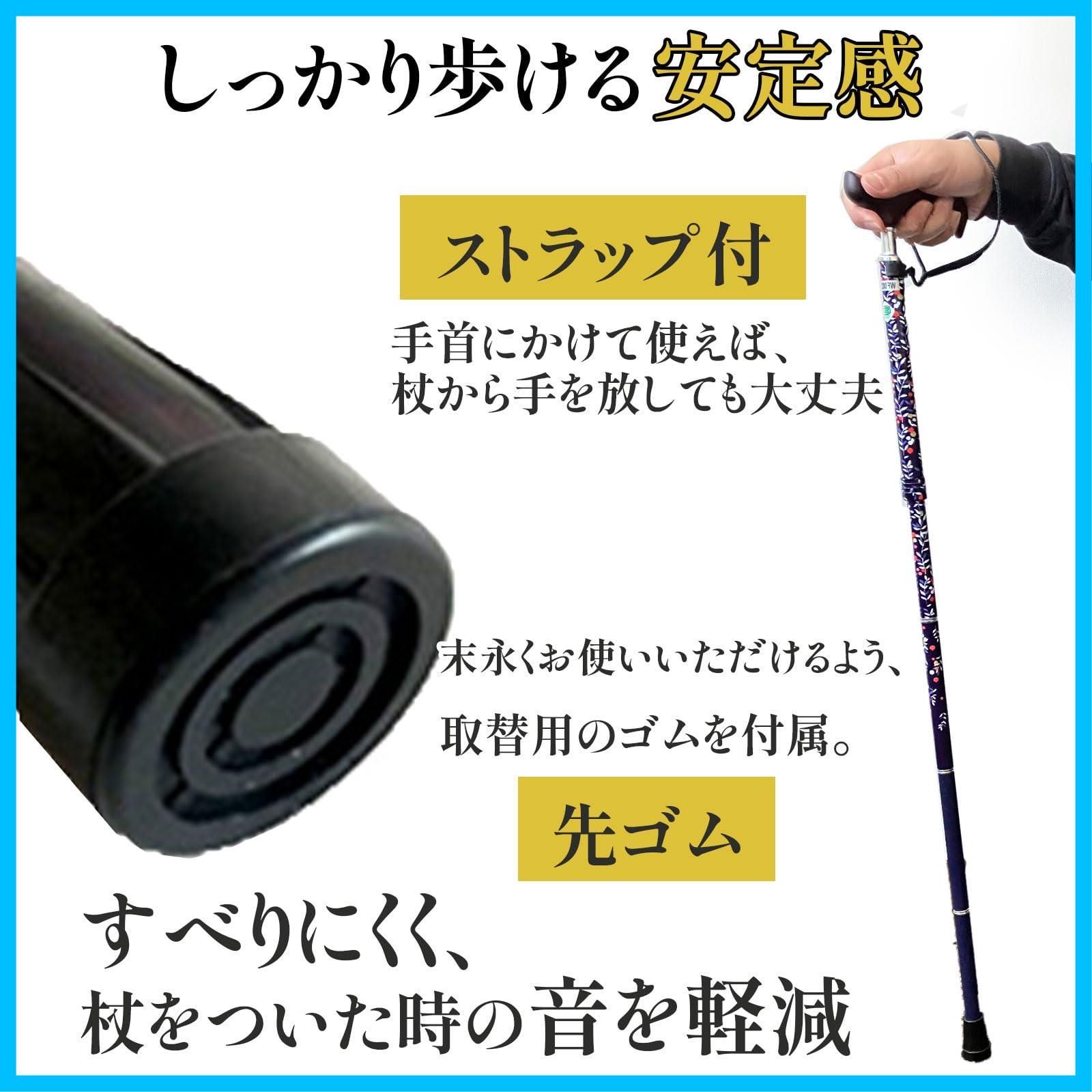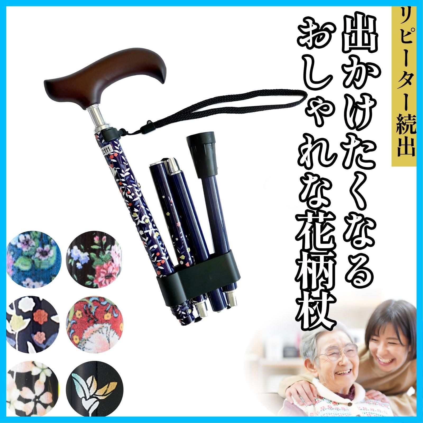 【在庫セール】スリムネック ブラックフローラル 折畳 夢ライフステッキ 握りやすい 替えゴム付 杖 ウェルファン 女性用 軽量