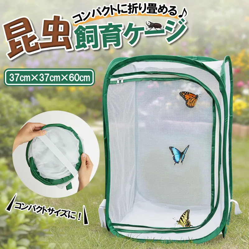 昆虫 飼育ケージ メッシュ 蝶 トンボ 爬虫類 育成 繁殖 ケージ コンパクト 折りたたみ 通気性 網かご シルクワーム 観察 ケース 昆虫採集 ポップアップ ネット 園芸 鉢植え 保護 カバー 防虫ネット 37cm 60cm