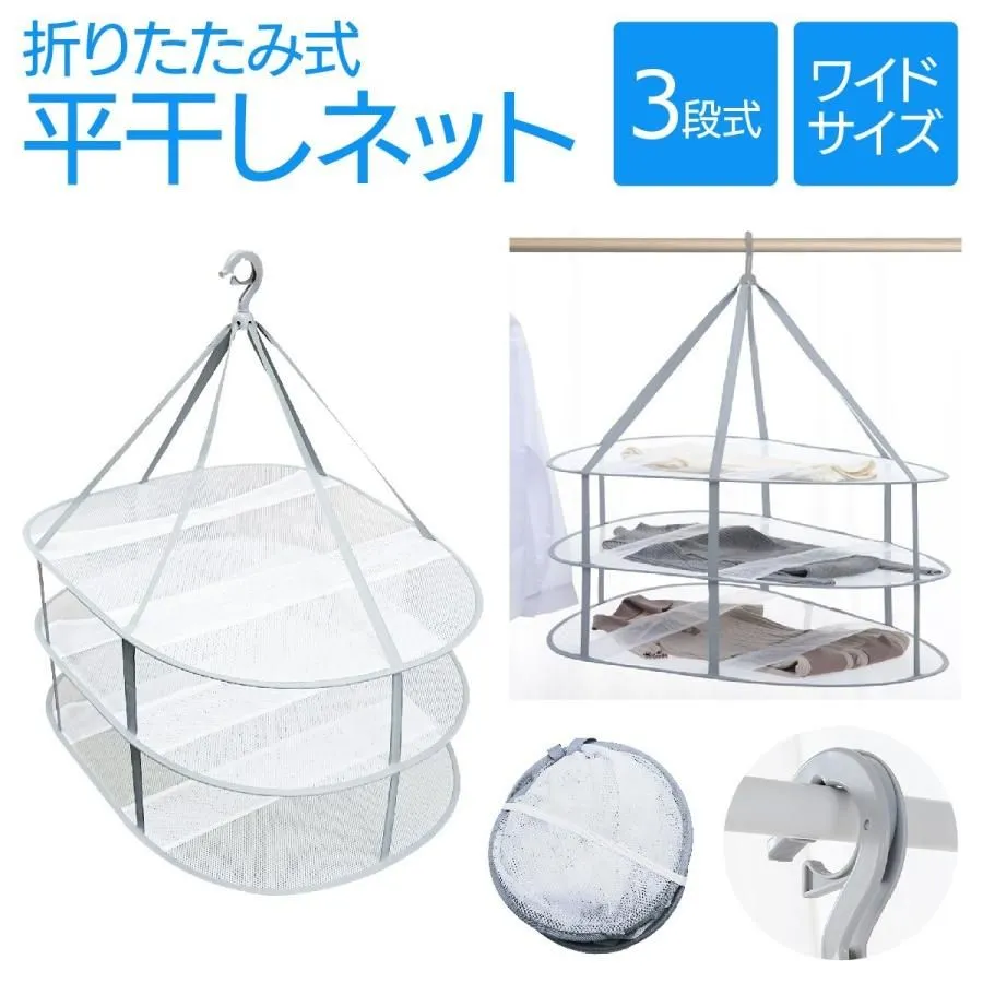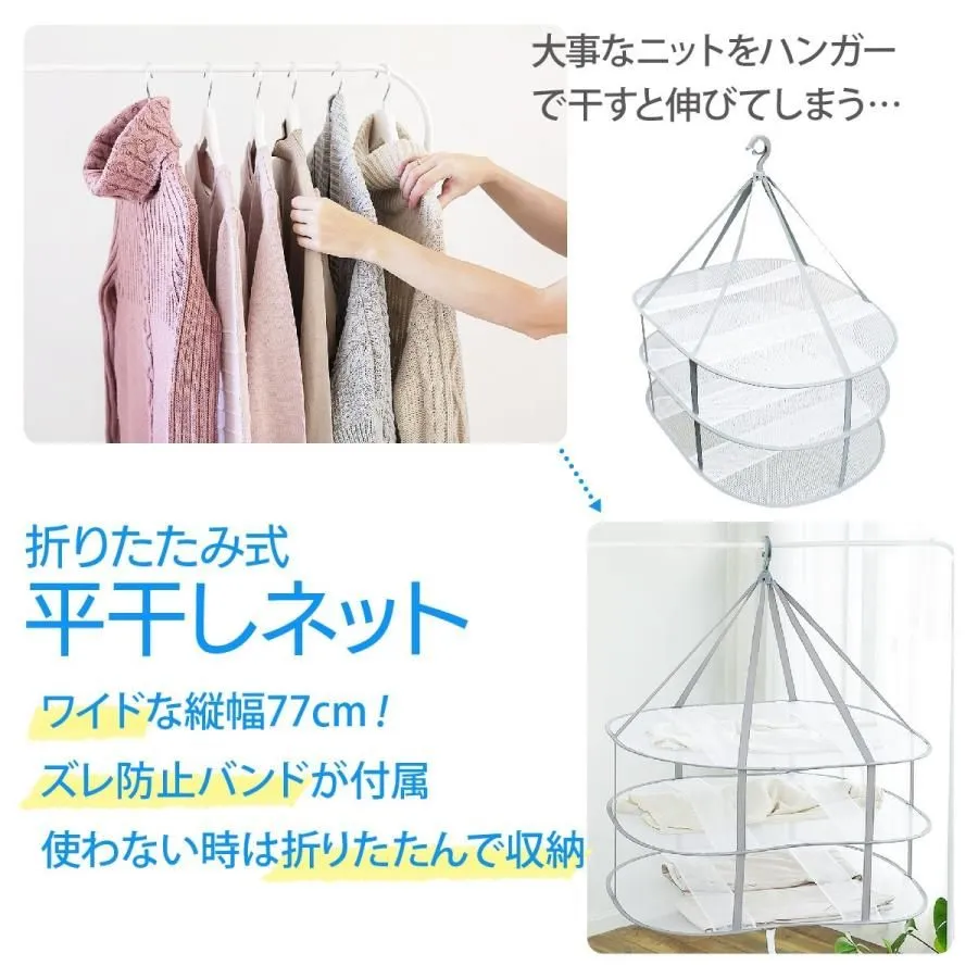 【送料無料】平干しネット セーター 3段 物干し ハンガー 折りたたみ セーター干し 洗濯 メッシュ ニット 型崩れ防止 室内干し hira-hghira-hg