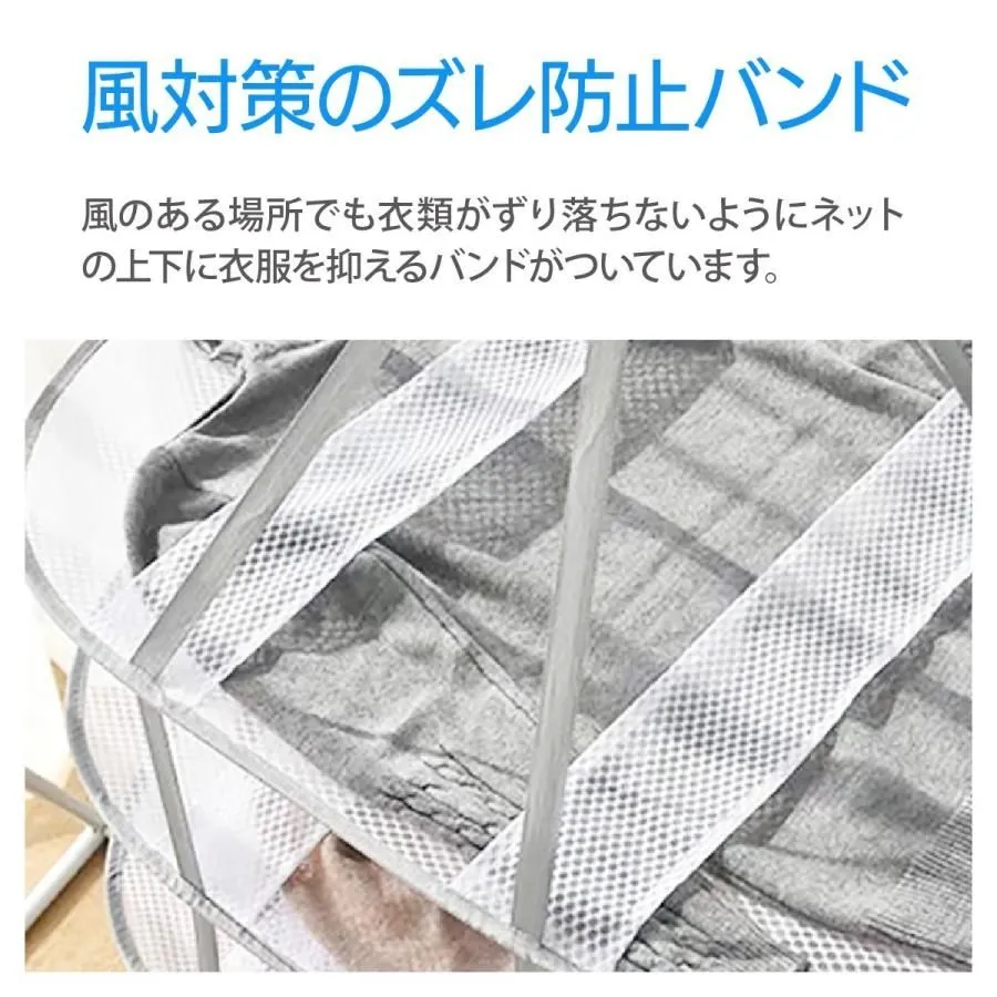 風のある場所でも衣類がずり落ちないようにネットの上下に衣服を抑えるバンドがついています。