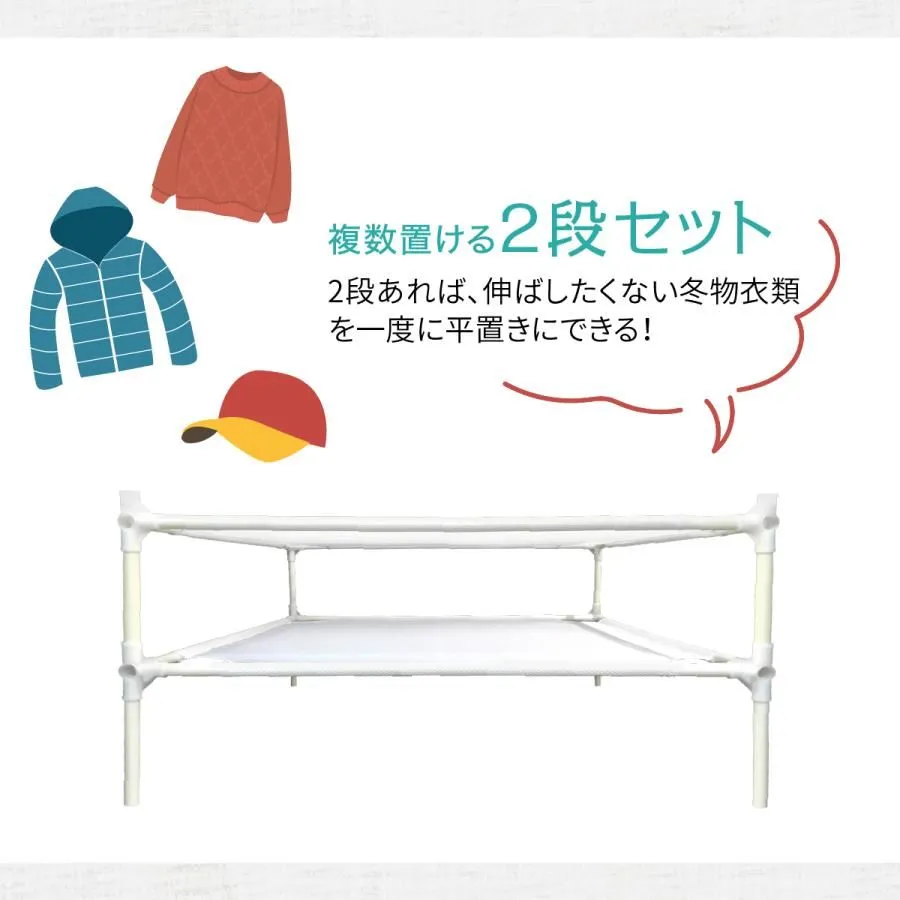 2段あれば、伸ばしたくない冬物衣類を一度に平置きできる。