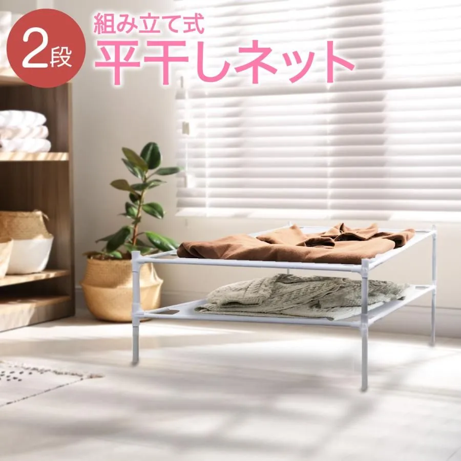 【送料無料】平干しネット 2段 組み立て式 セーター 物干し セーター干し 洗濯 メッシュ ニット 型崩れ防止 室内干し 新生活 hira-net02