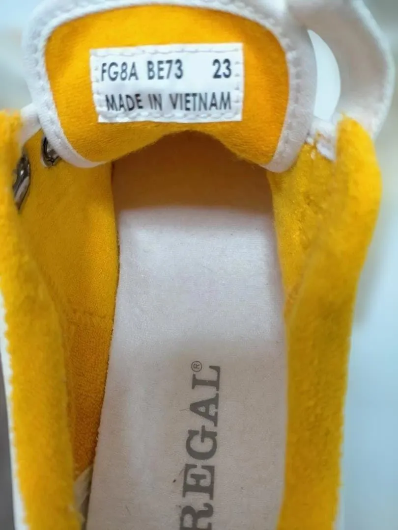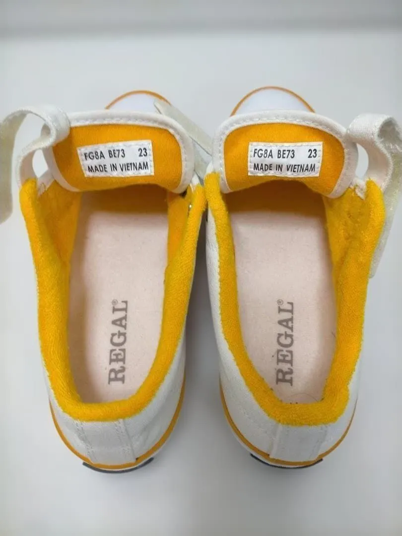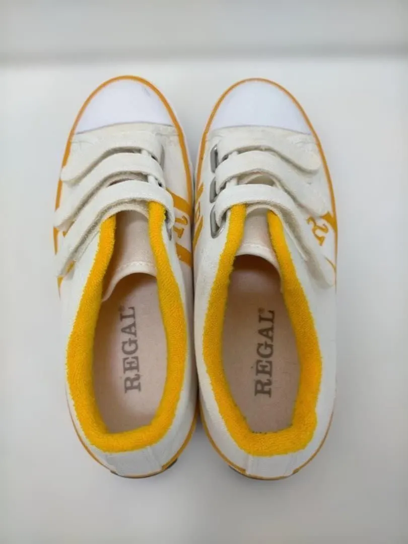【直接引き取り・配達】 ・福岡県糸島市にて直接引き取り可(送料分お値引き) ・自社便配達可/糸島市:1,500円、福岡市内:3,000円 ・その他地域はご相談ください。 ・配達は「車から荷降ろし可能な場所」まで対応(室内搬入は有料相談可) - ブランド: REGAL - カラー: ホワイト/イエロー - デザイン: ベルクロ式 - スタイル: カジュアルシューズ - サイズ:
