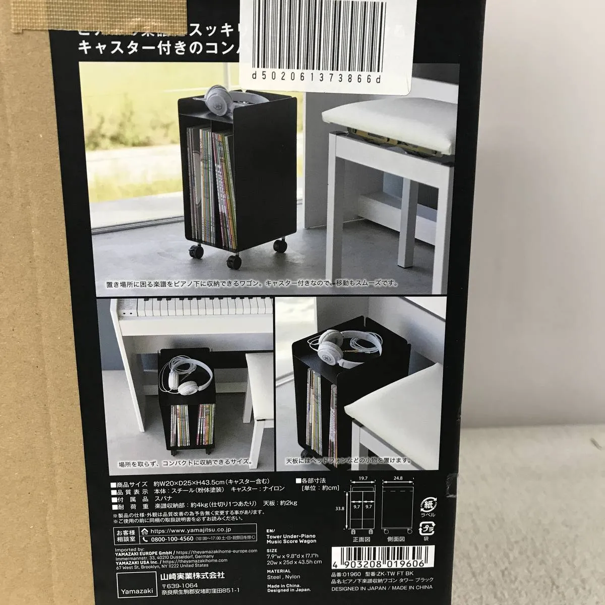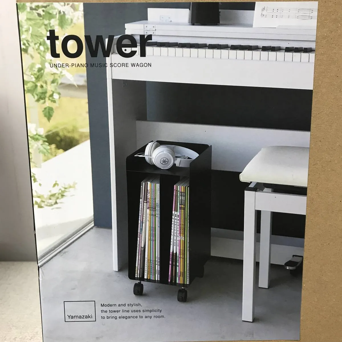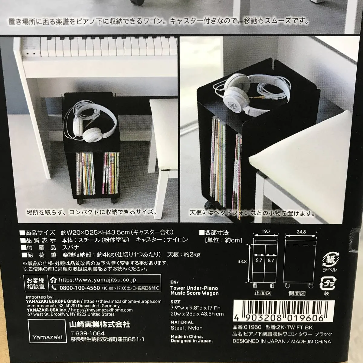 ★未使用★ 収納ラック YAMAZAKI 山崎実業 ピアノ下楽譜収納ワゴン タワー ブラック BZN063358相