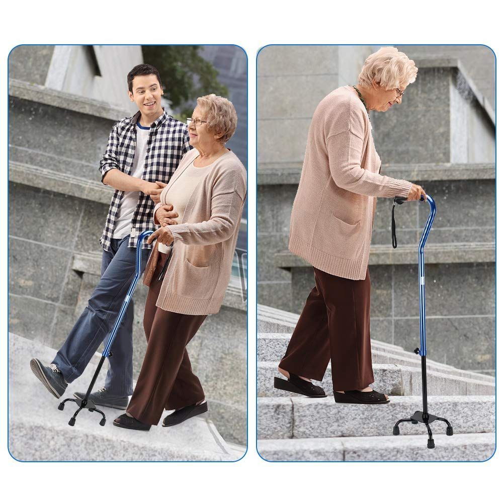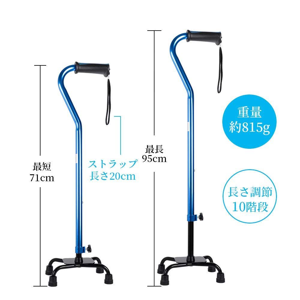 杖 4点 つえ 介護用 軽量 自立式 伸縮式 長さ調節可能 ステッキ 歩行補助 高齢者 リハビリ 敬老の日 (ブルー)