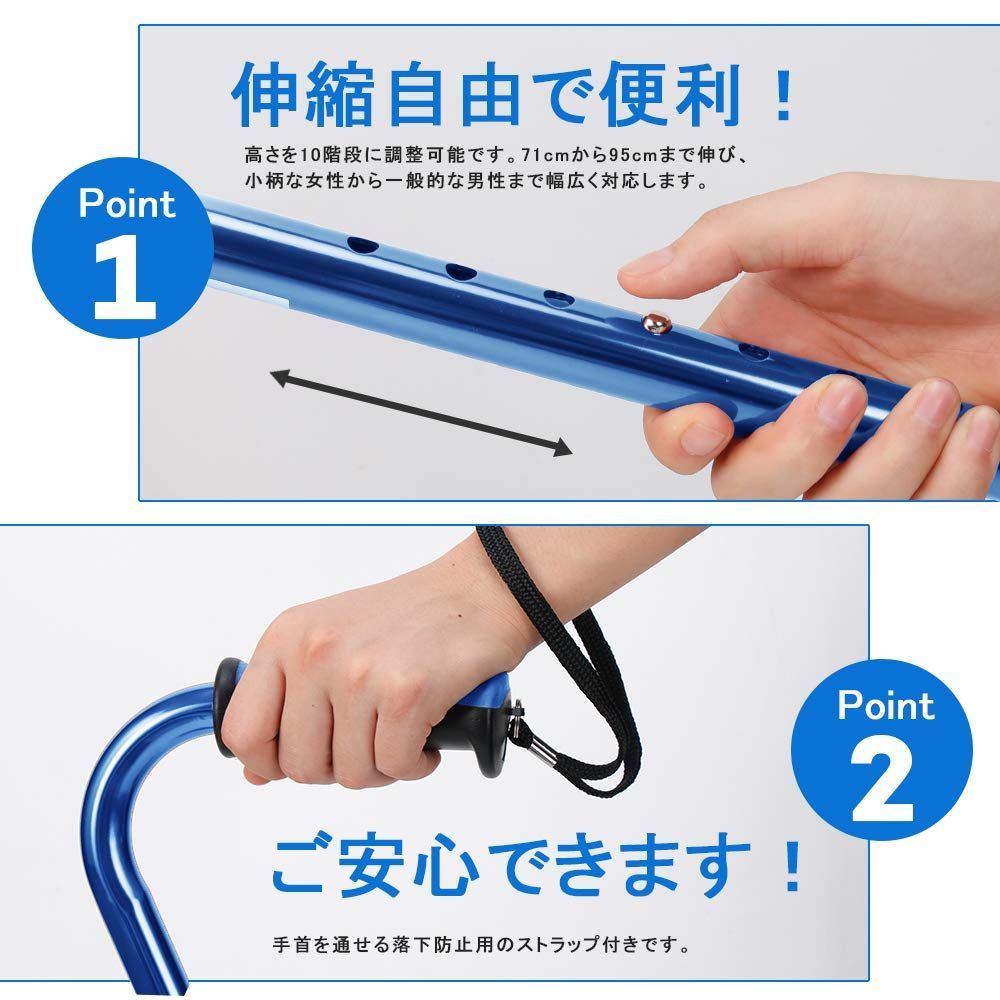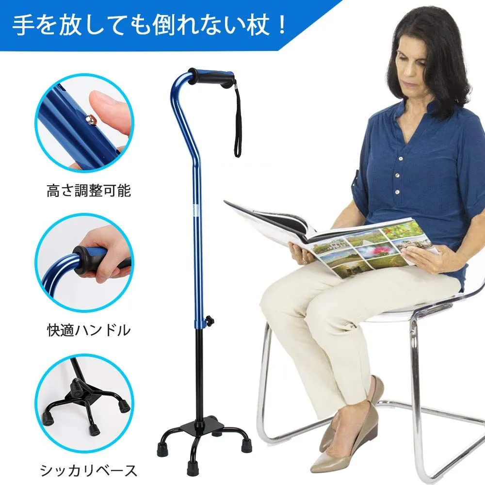 軽量 自立式 伸縮式 介護用 長さ調節可能 ステッキ つえ 歩行補助 高齢者 4点 リハビリ 敬老の日 杖 (ブルー)