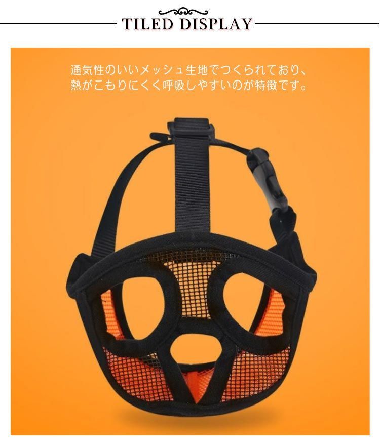 L:首周り53cm以上 おすすめ体重17.5kg以上 素材:ナイロン 色:ブラック オレンジ フレンチブルドッグなどの短いお鼻のワンちゃん用口輪。 拾い食い、噛みグセ 、キズ舐め、 むだ吠えなどの防止に効果があります。 通気性のいいメッシュ生地でつくられており、熱がこもりにくく呼吸しやすいのが特徴です。 バックル式で簡単に脱着できるので、飼い主さんの負担も軽減できます。-+ ベルト部分は長さを調節できるため、愛犬に合わせて調整できます。 小さくかさばらないサイズで持ち歩きやすく、必要なときだけサッと使えるのが便利です。 ワンちゃんの視線を遮ぎらない目と鼻の周りが大きく開いたデザインで、マズル装着時に感じる愛犬のストレスを軽減。